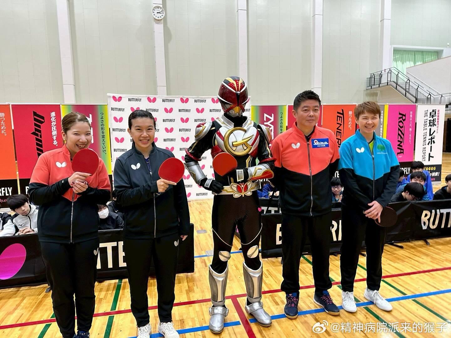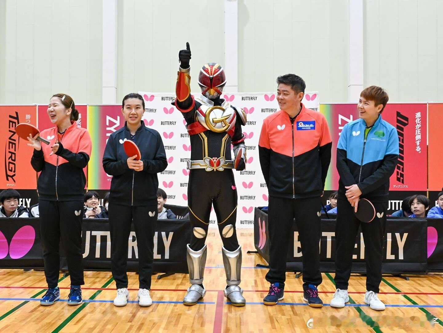 陈思羽、李皓晴、森樱花、邱建新、蝴蝶的签约英雄GLAYZERMAN一起参加蝴蝶乒乓的活动📷
