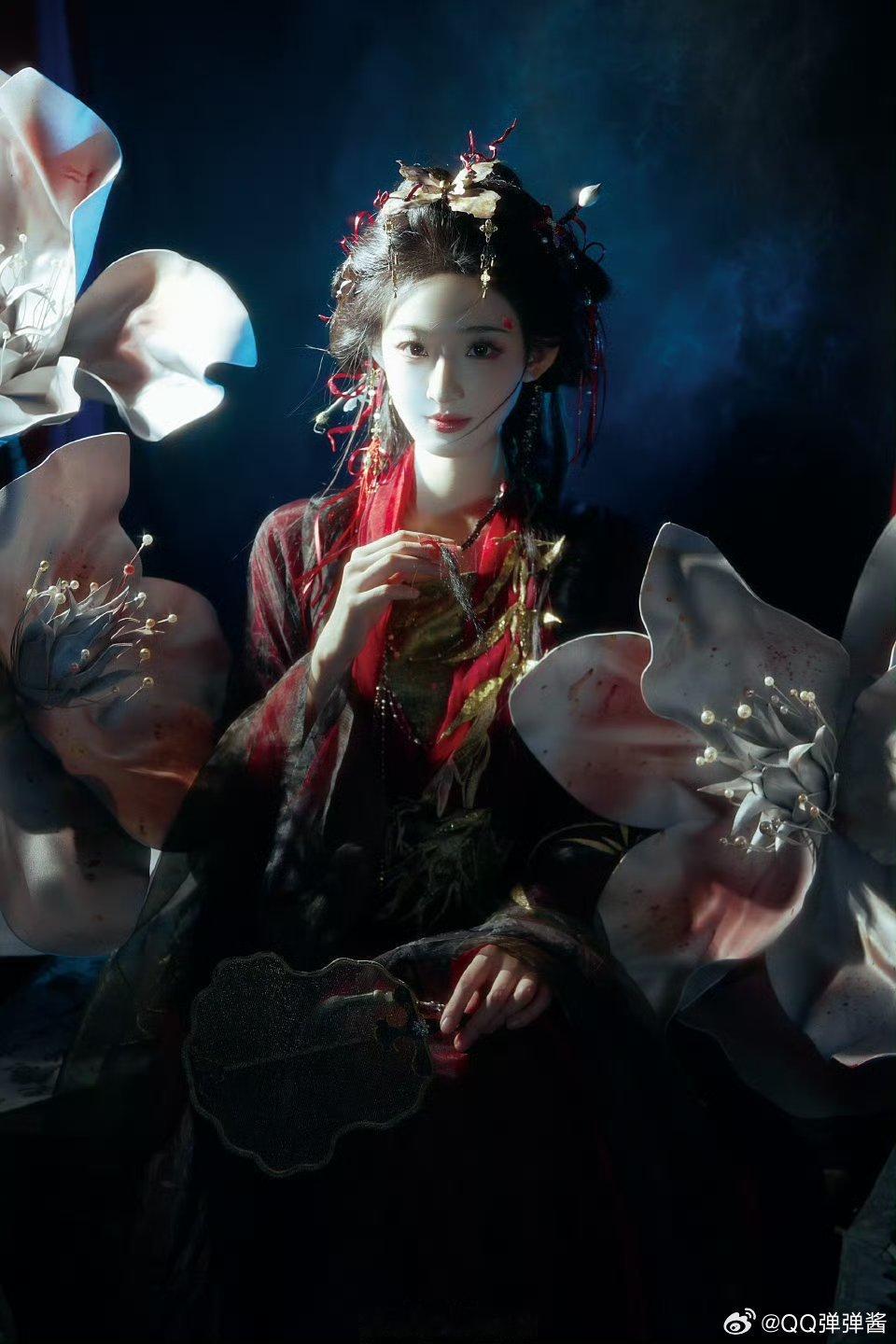 谁能想到这是《暗河传》里那活泼可爱的白鹤淮啊!换个造型直接变了个人,眼神又冷又带感,红黑配色衬得皮肤巨白[心][爱你]