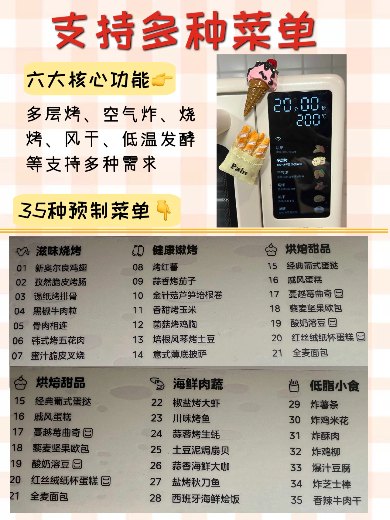 空气炸的功能用起来也方便,40多种内置菜单够我研究大半年烘焙美味了🙈