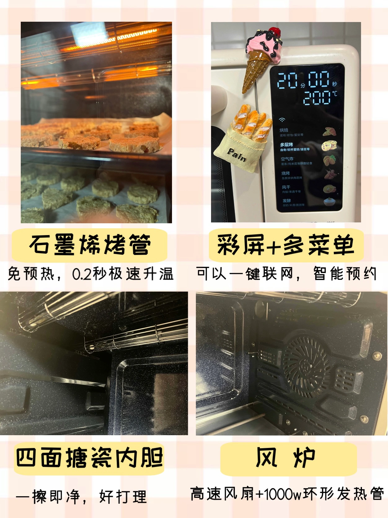 买回来之后做了吐司🍞、燕麦饼干,都很成功😋是一台自己懂火候、懂调节、懂菜谱的专业保姆级烤箱