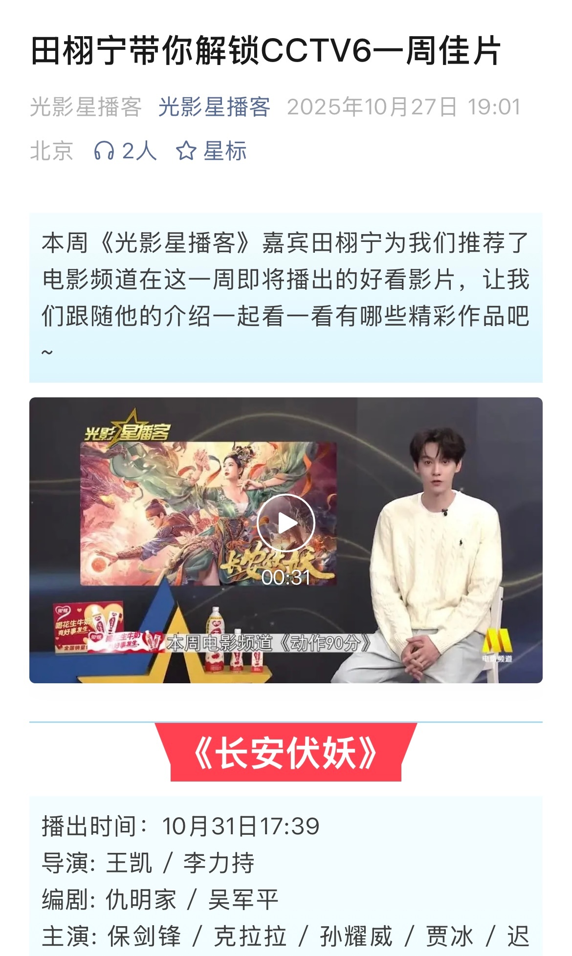 田栩宁《光影星播客》解锁CCTV6一周佳片!