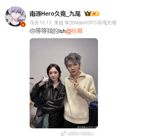 九尾 杨幂你等等我的lsh 九尾晒与杨幂合照:“你等等我的lsh”,杨幂回复:“哦?[哪吒嘟嘴]”笑鼠,自己的梗自己玩?