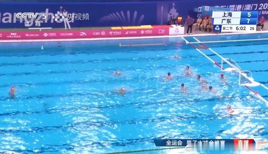 全运会男子水球赛决赛,广东队和上海队在争冠军了,挺激烈的,央视有直播