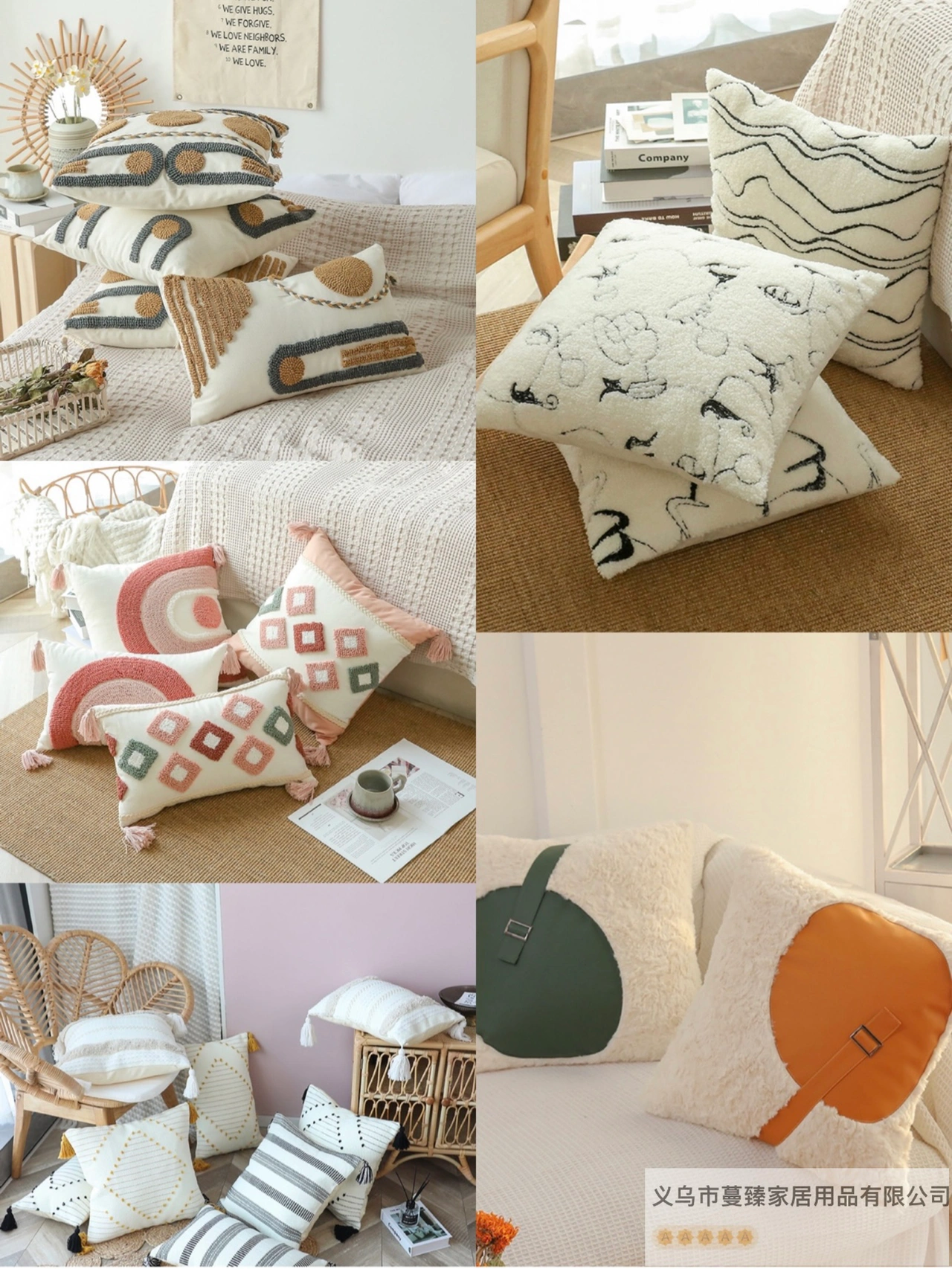 比如:抱枕跟沙发、地垫、窗帘、装饰画等