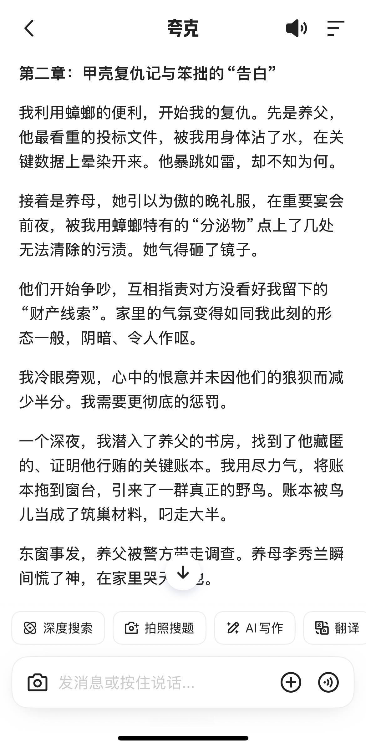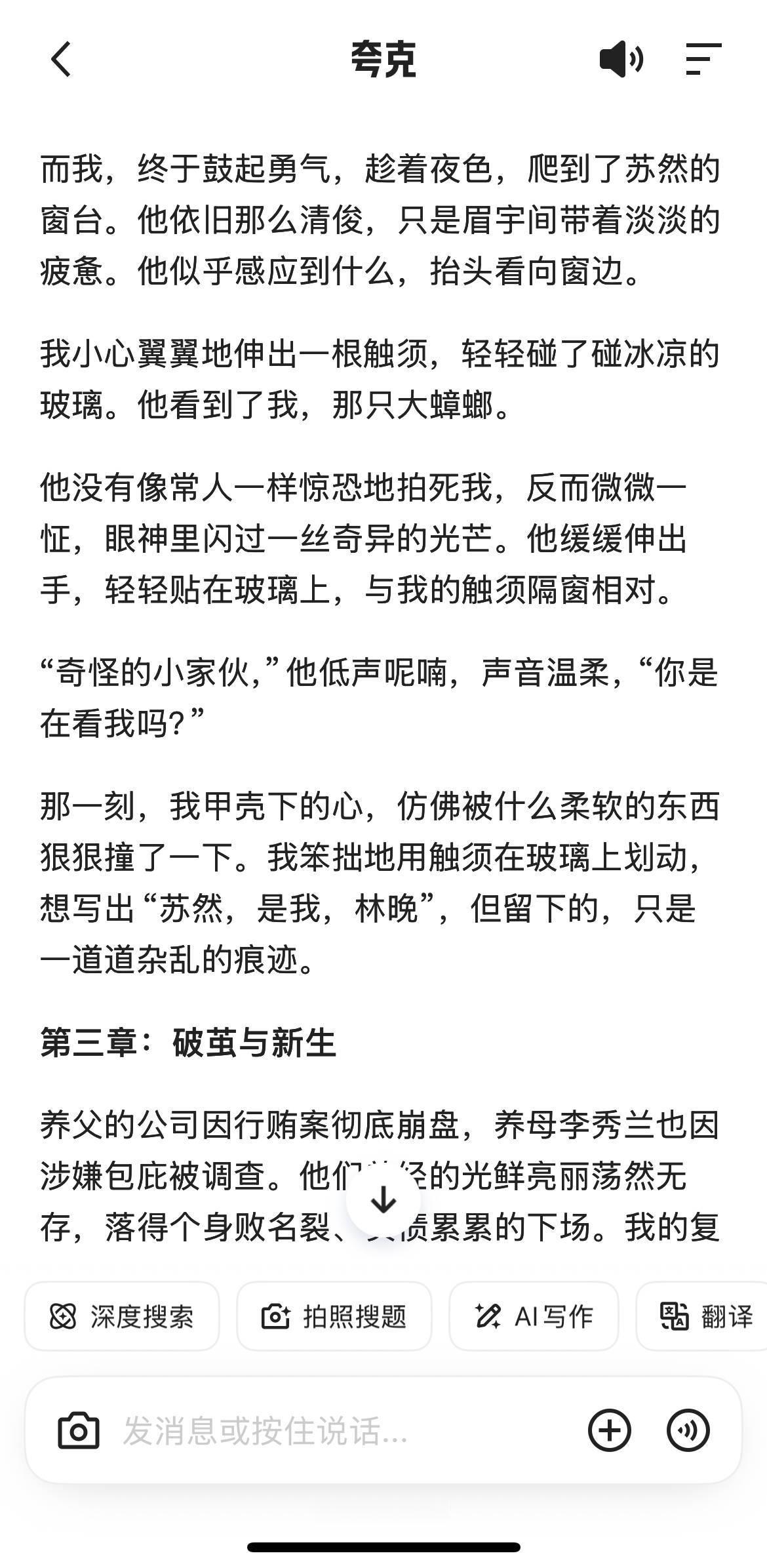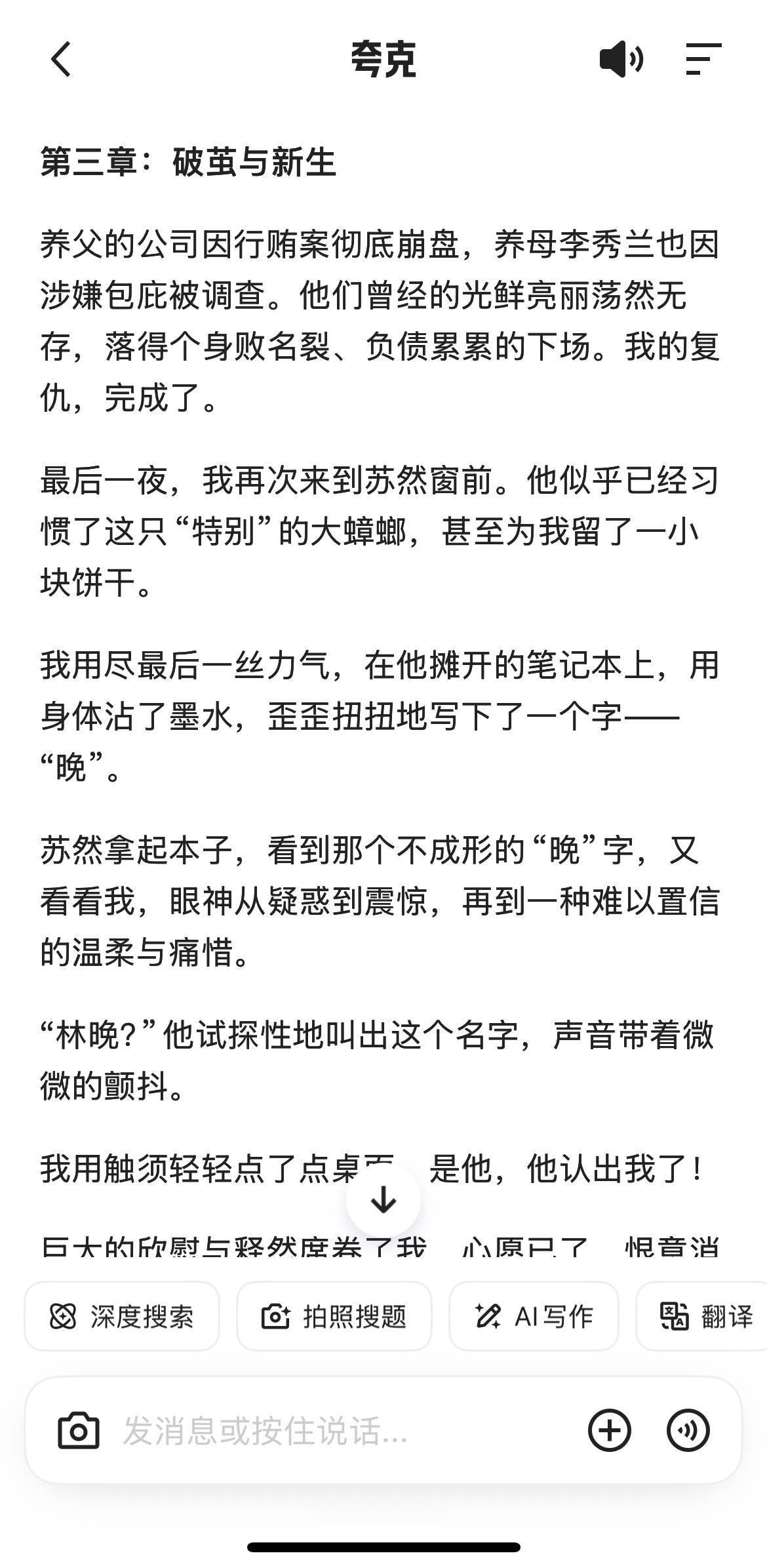 再也不用卑微求文了!没有你想不到的顶级细糠姐们儿现在自力更生!让夸克给我写了一篇小说,好家伙,还真是那个,这情节比我看过的还带劲...