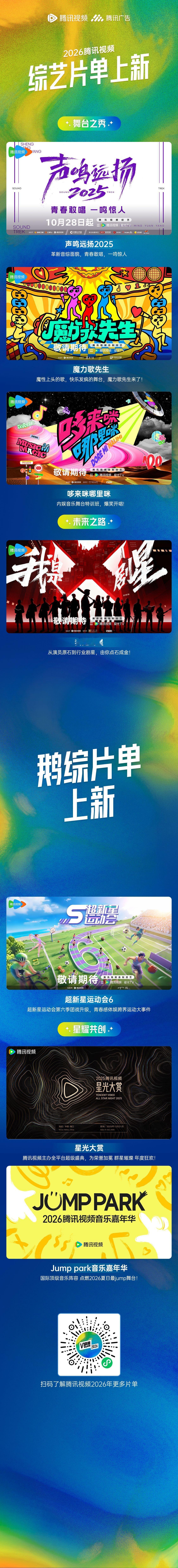 鹅厂2026综艺片单 哦莫哦莫,就这个鹅的综艺新片单看的我眼睛一亮又一亮!五哈,地球团,还有出发团搞笑继续,快乐继续!在一饭封神2感受中餐的奥妙,在桃花坞里治愈社交,还有脱友、主咖里的朋友们稳定输出,还能跟着王一博去探索新境,在自然里获取能量~好好好,看完这个看那个,鹅真的把我养得很好!