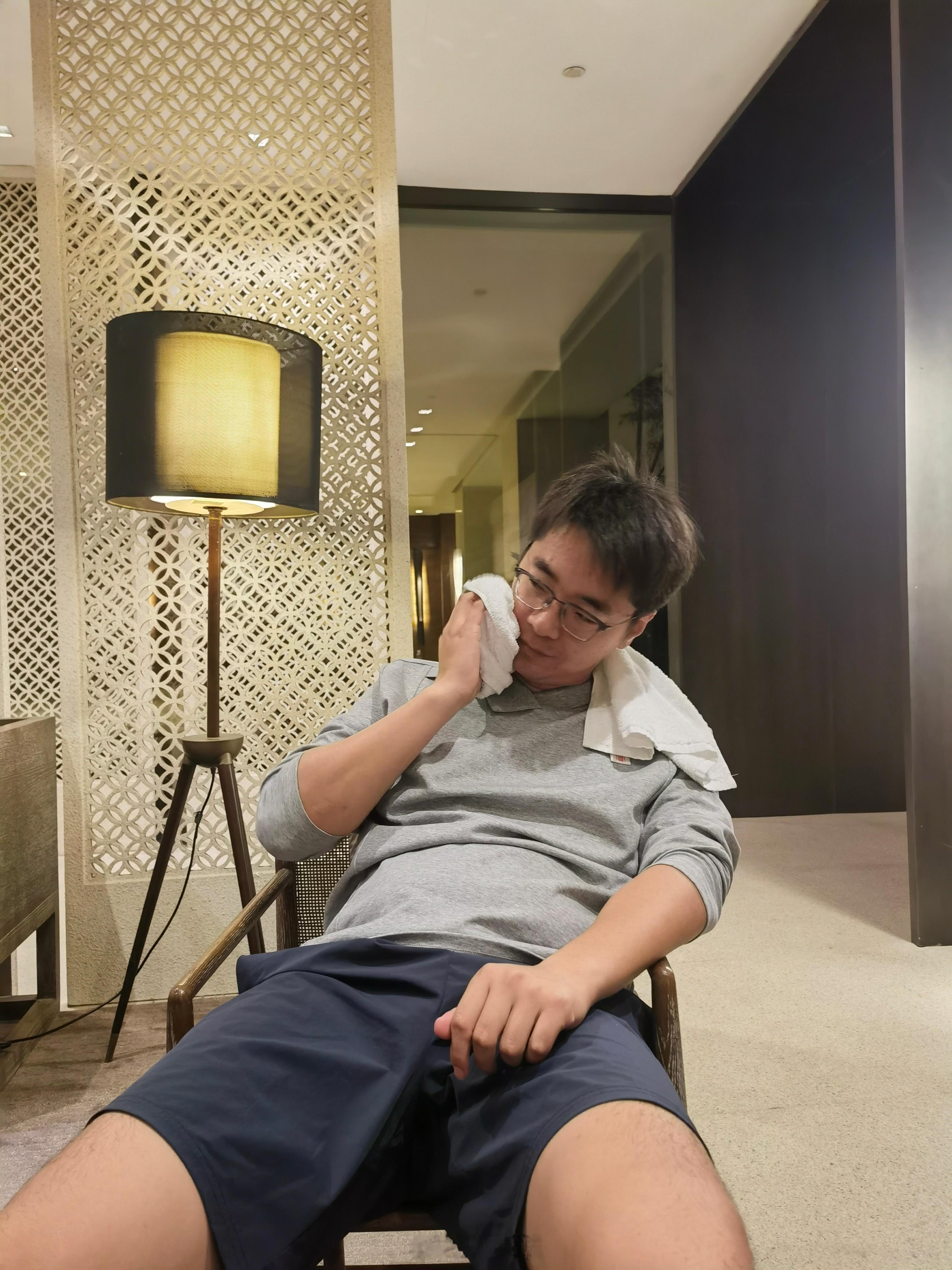 看到了我在青岛,于是说他也在涵碧楼,约我去健身房。