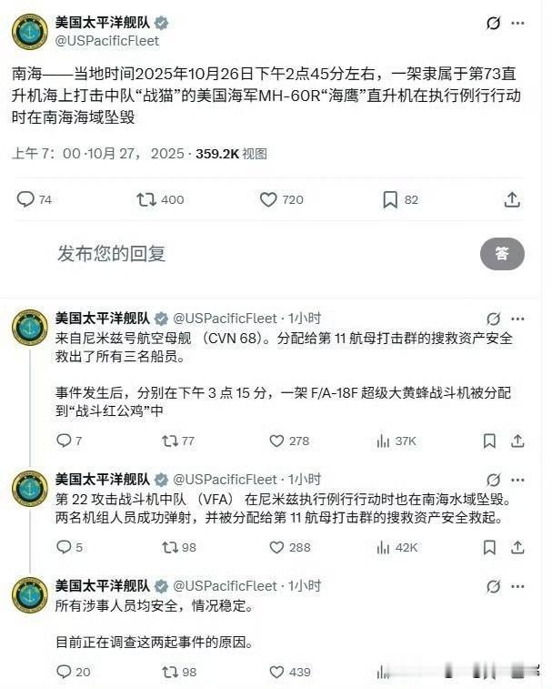与中国无关!美国军方的初步调查报告出来了,已排除敌对行动干扰。几十年了,游戏规则仍然没有改变,以实力地位讲话。当你弱时,对手都可以拿"洗衣粉″说是"大规模杀伤性武器″;当你强时,对手在你面前摔倒,都不敢指责与你有关。我都说过了是天气原因,为什么还说是设备维护问题?不怕大兵掉饭碗吗?中方严重反对美方用飞机填海这种非人道行为,对这种行为表示谴责,对此填海事件表示关切。世道真的变了,以前出这种事跟中国没关系也会赖到中国头上,现在就是跟中国有关系也不敢说了。