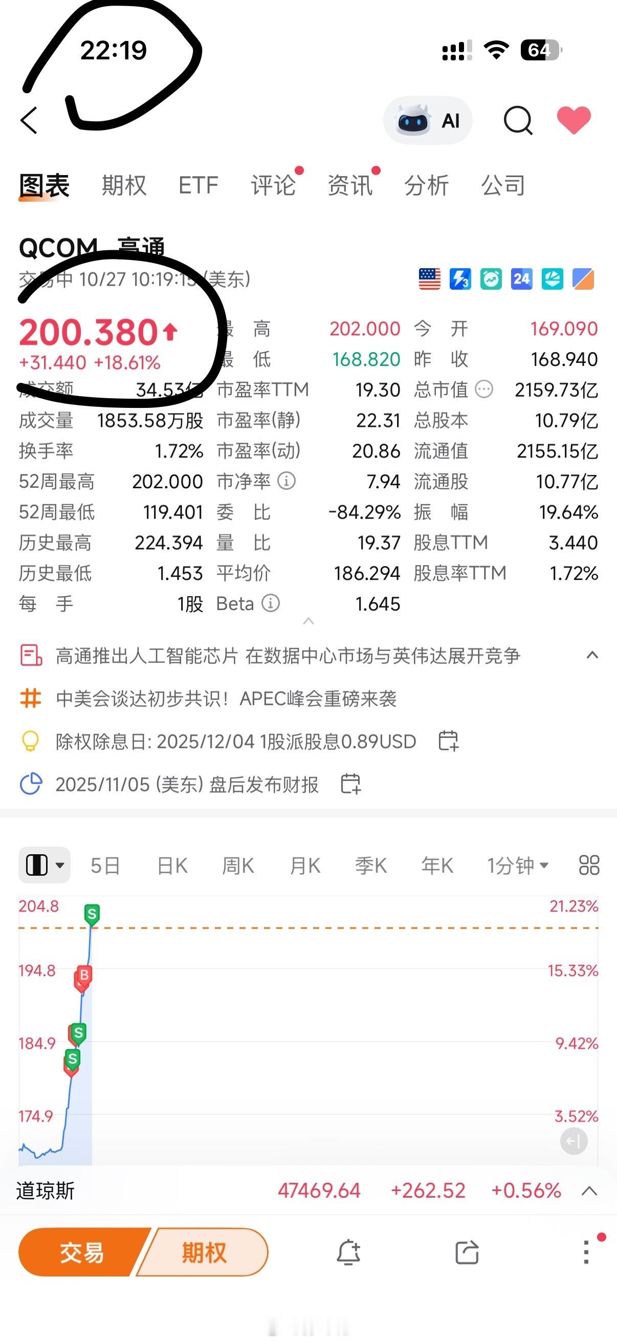 今夜15分钟的奇迹属于高通!在股市没有不可能。