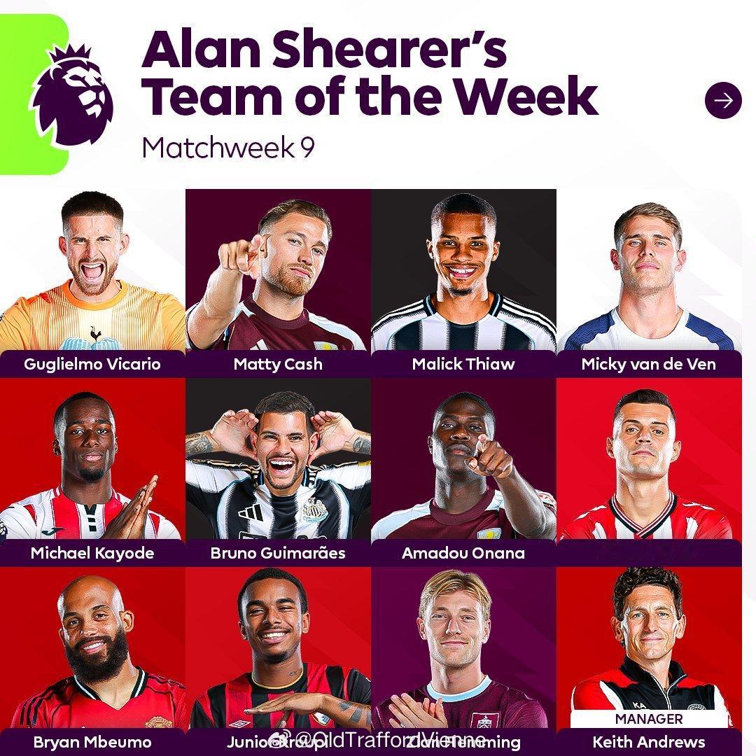 阿兰希勒摆出的英超第9轮最佳阵容:姆贝乌默入选