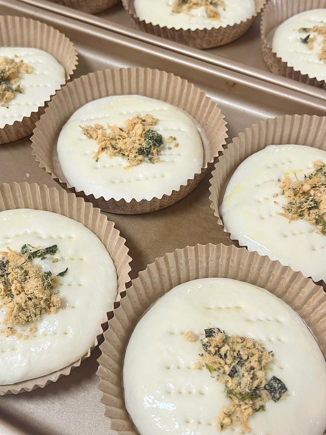 4⃣️取一个面团,擀成圆形,放进纸托