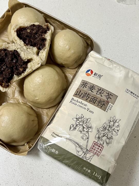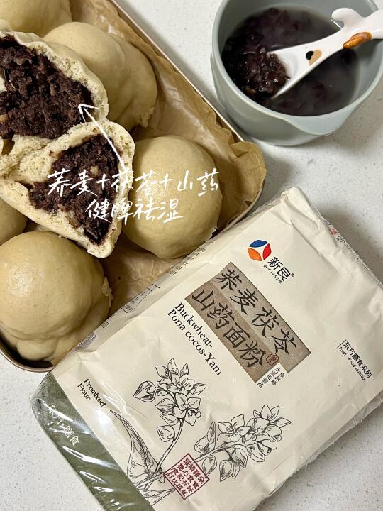 🫘杂粮面团:新良荞麦茯苓山药面粉200克|玉米粉100克|水200克|酵母3克