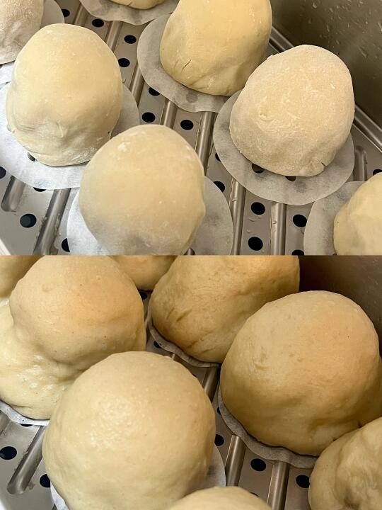 3️⃣做好的红豆包放入蒸锅,盖上盖子醒发15分钟(醒发后体积会变大,手感变轻)