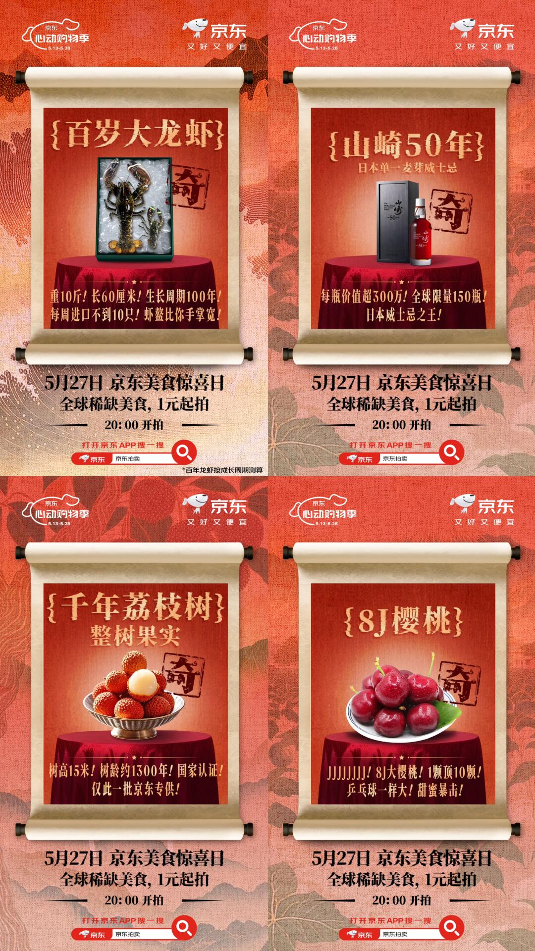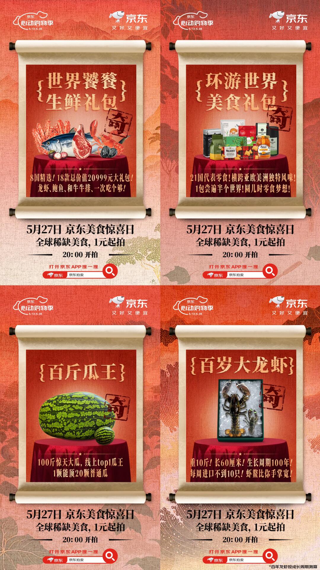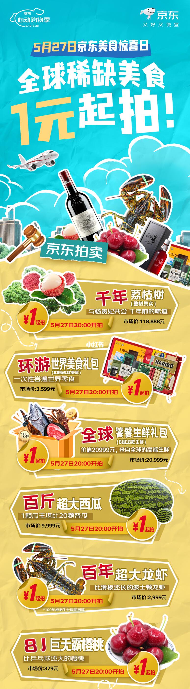 千年荔枝树、百岁龙虾、百斤西瓜…这确定不是奇幻美食博物馆?5月27日【京东美食惊喜日】全球稀缺美食一元起拍!打开京东App搜“京东拍卖”,下午2点蹲直播看雷佳音带你解锁三重惊喜!