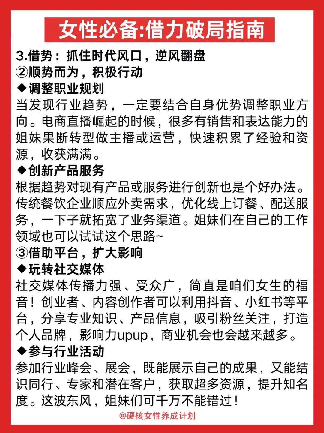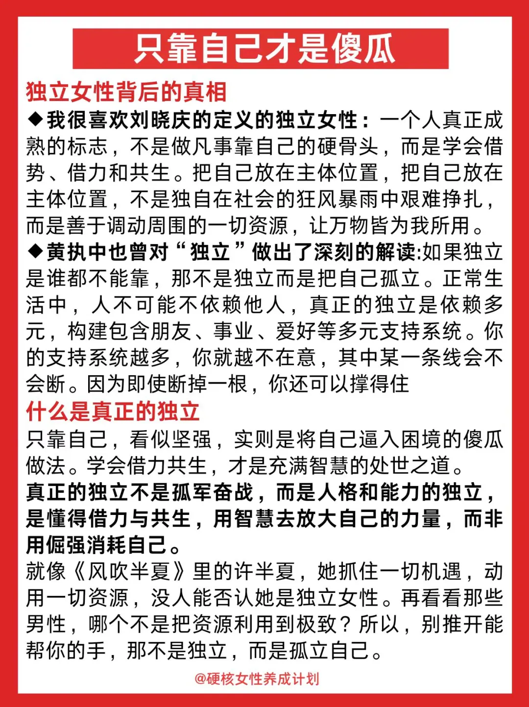 2025新独立女性宣言 "从今天起,不做独行侠,要做资源猎手: 借巨人的眼界筑地基 借圈层的助力登高台 借趋势的东风揽星辰 真正的强大不是单打独斗,而是懂得向世界借力"