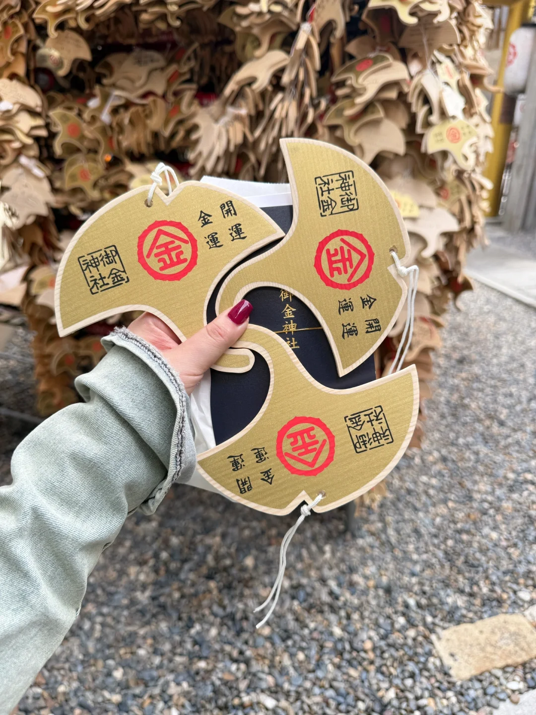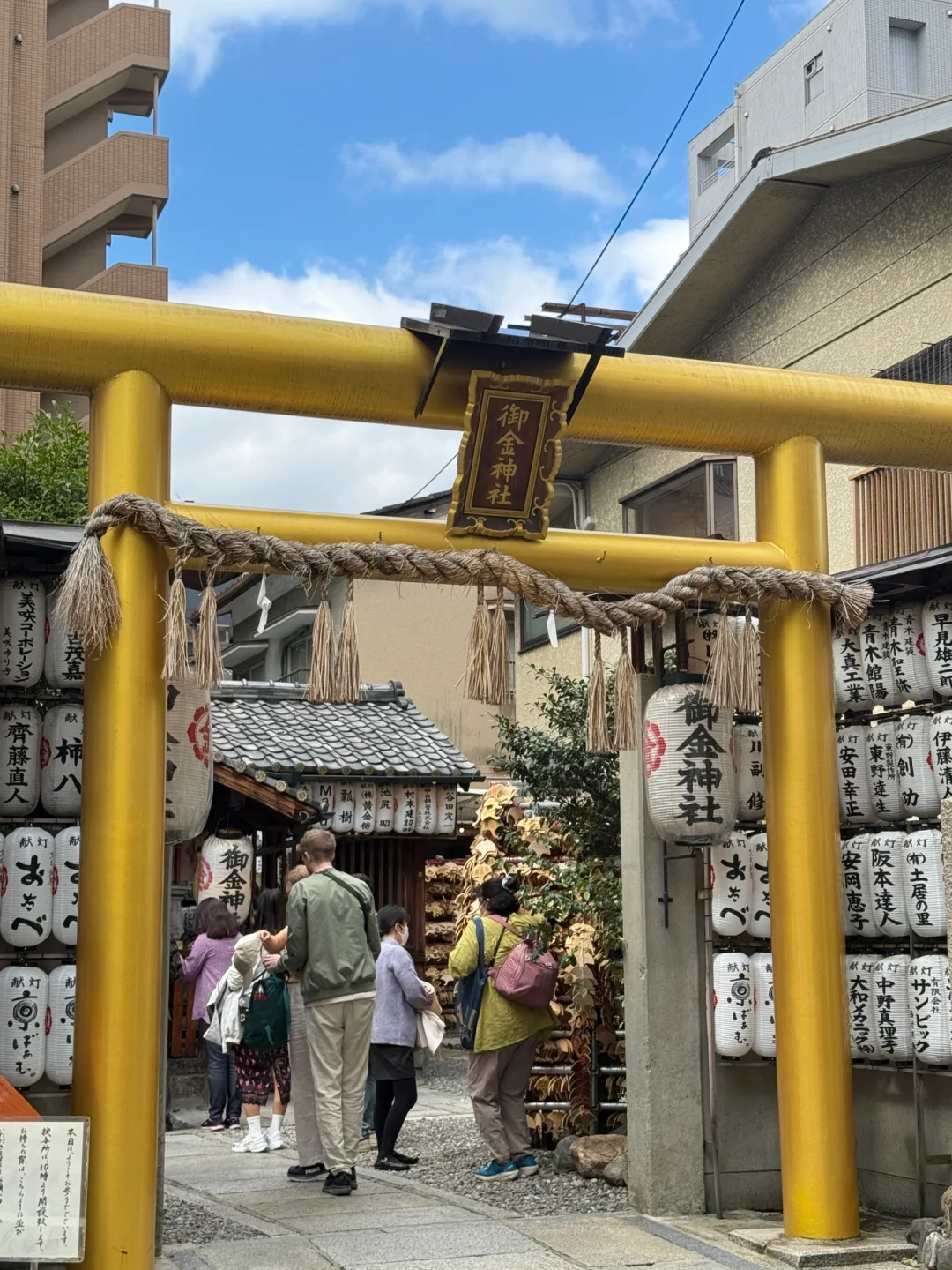 御金神社💰门头都是金灿灿的 早上🖇️早起从大阪到京都已经门口都是人了 财神殿前我长跪不起 也是求上了🤑 进门左手边先洗手 可以拿银行卡洗寓意财源滚滚 仪式: 1、丢钱 2、摇铃召唤神灵 3、鞠躬🙇 4、拍手👏 5、鞠躬🙇