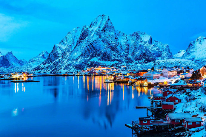 挪威·罗弗敦群岛,整个群岛都处在北极圈以内,气候严寒,风景既壮观又柔美自然风