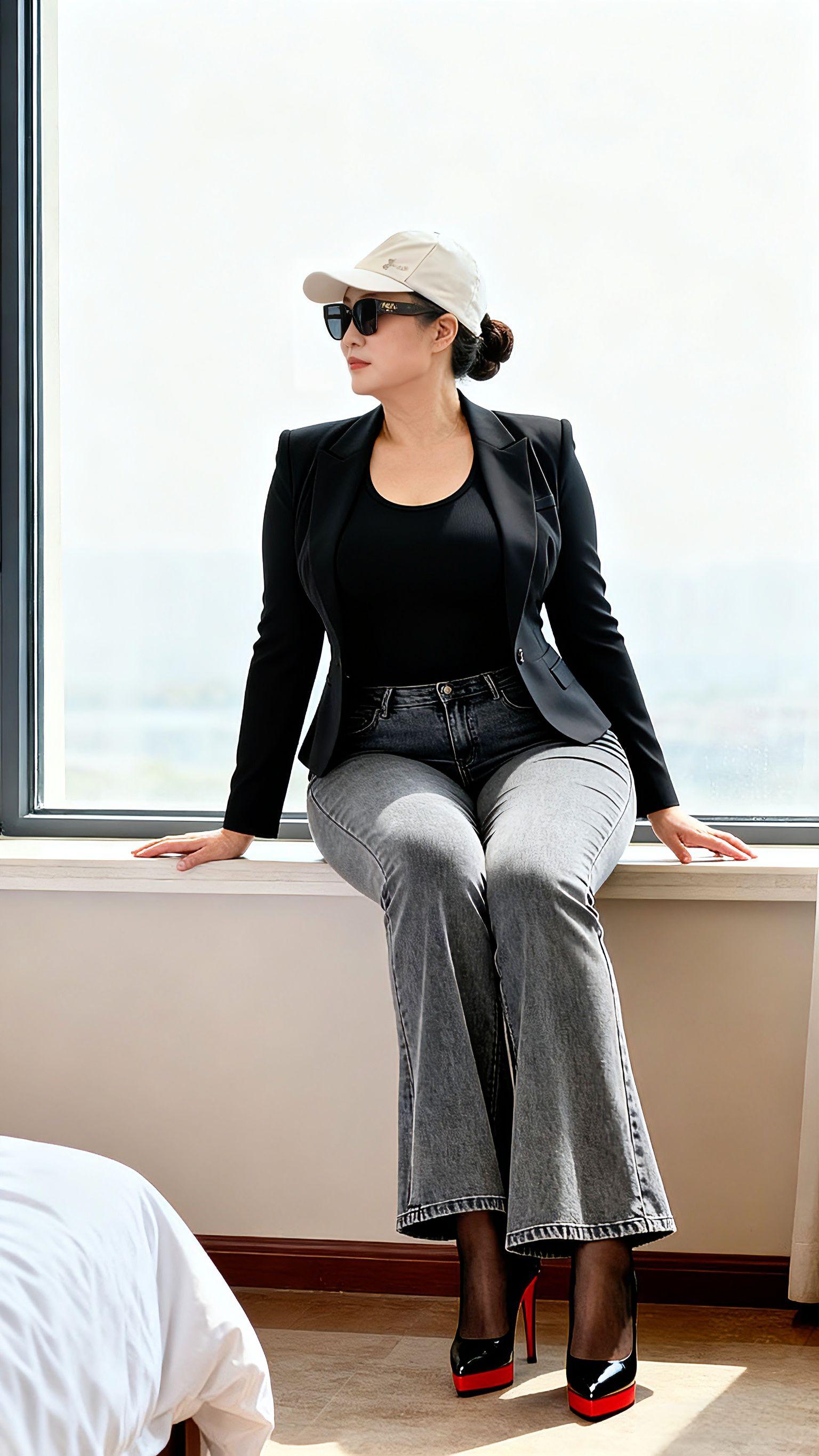 怪不得那么多人喜欢牛仔裤穿搭,这也太显身材了。尤其是这种微胖,丰满型的女人,简