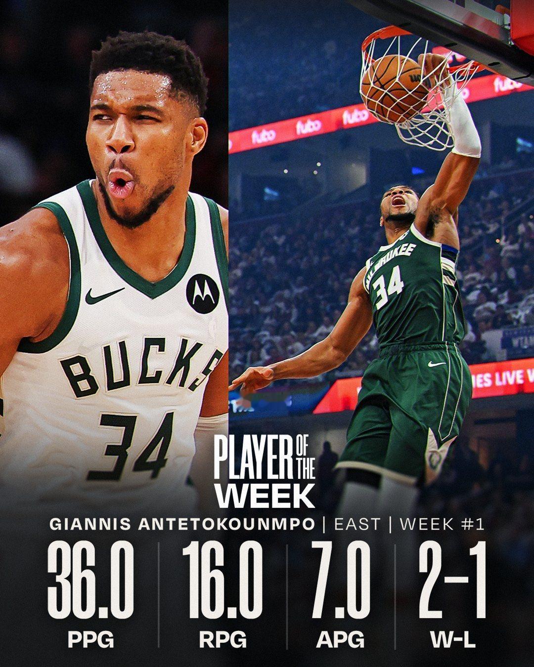 ☞文班和字母拿下了NBA第一周的周最佳​​​