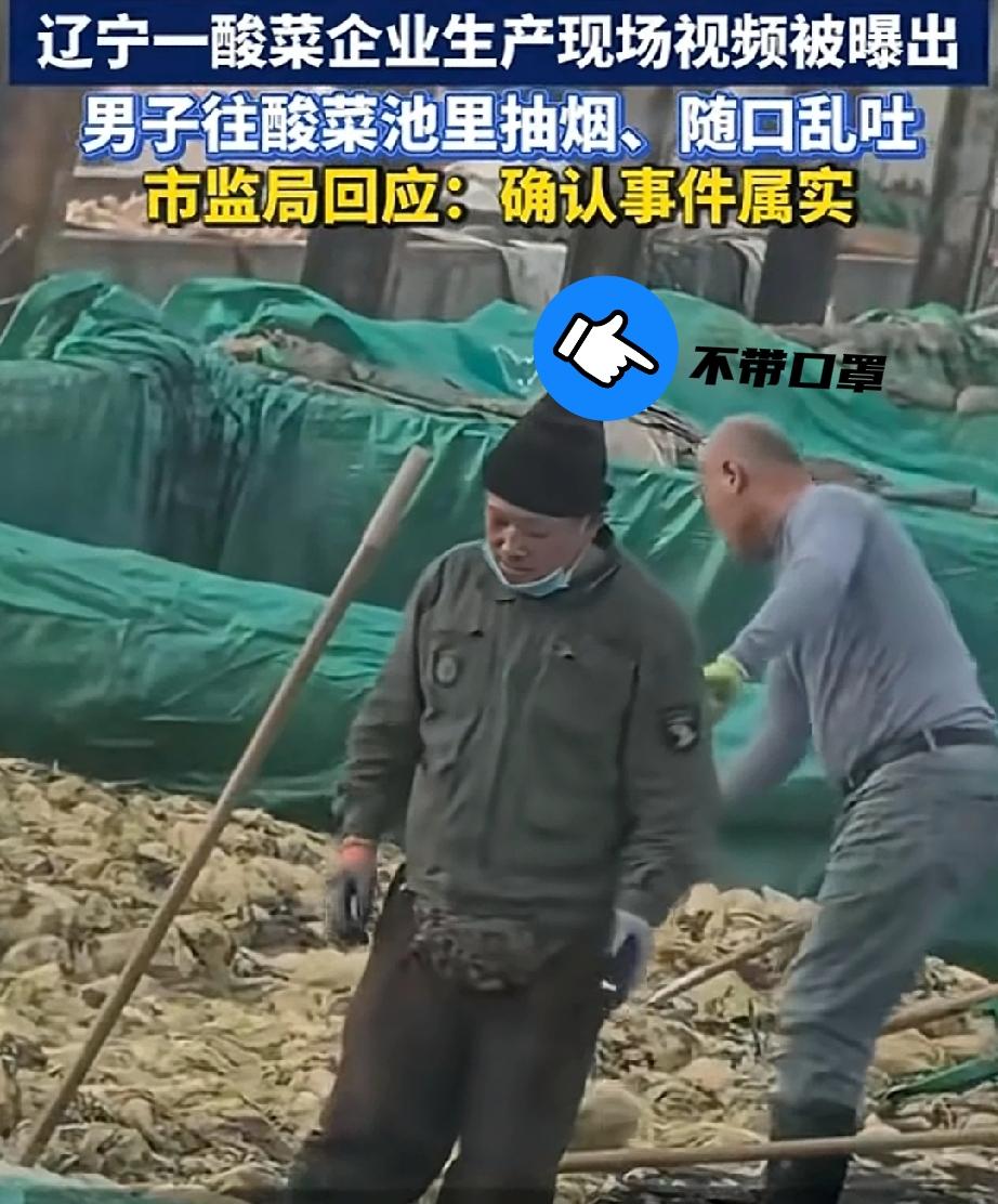 一企业涉事,会致死一个行业,酸菜又该遇冷了 辽宁兴城一酸菜企业,被爆出工作人员,在酸菜池里工作时,吸烟并向酸菜池吐痰,市监督局确认,事件属实。 看了视频好几遍,越看越上头,恶心极了,不敢想象,我们平常吃的酸菜,有烟灰,有痰……,比吃了死蝇子都恶心。 这一批没流入市场,上一批呢?难道不是他在干活?他没抽烟?没吐痰?再看其他干活的员工,有的连个口罩都不戴,谁保证他们没吐痰,没抽烟。 我倒觉得,除了抽烟吐痰,还会有其他更脏的地方,无人监管的酸菜池,与垃圾池有何异? 预制菜的脏,只有想不到的,没有做不到的,以前的榨菜事件还历历在目,真是不堪入目,简直脏的无极限。 酸菜生产环节,卫生就是死角,处理一个企业,辞退一名员工,根本不是解决办法,其他企业难道不是这种情况?只要看不到,谁敢保证? 规范生产,透明监督,行业有规矩,才不至于一个企业涉事,干死一个行业。