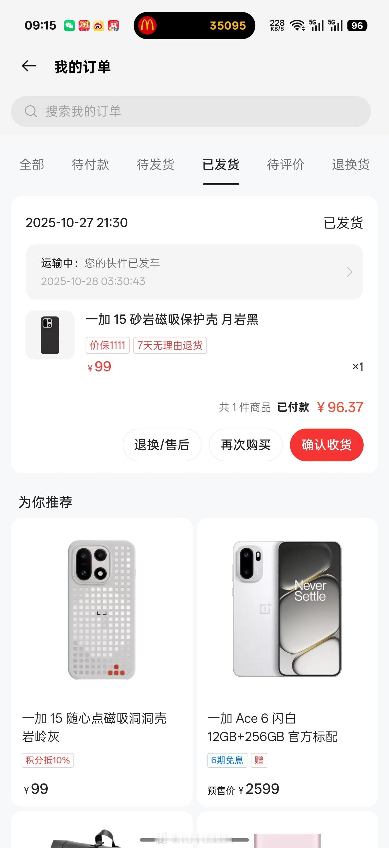 还好下单得早,一加15 的官方砂岩磁吸壳在某东上已经显示要补货了。(虽然我是在 OPPO 商城里头买的)