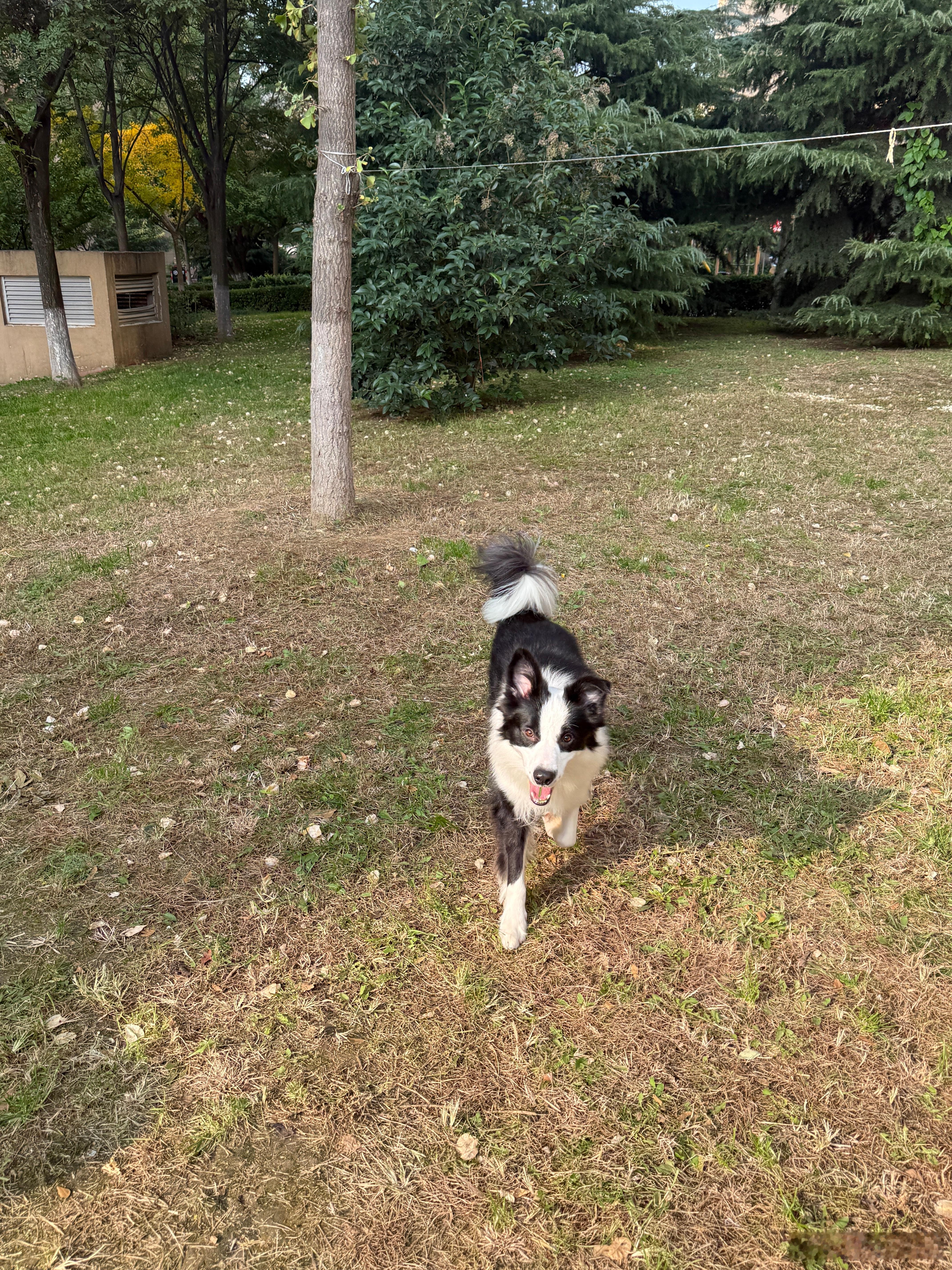 八点半化完妆我家狗又开始哼唧要下去遛弯,然后我带着狗下楼;