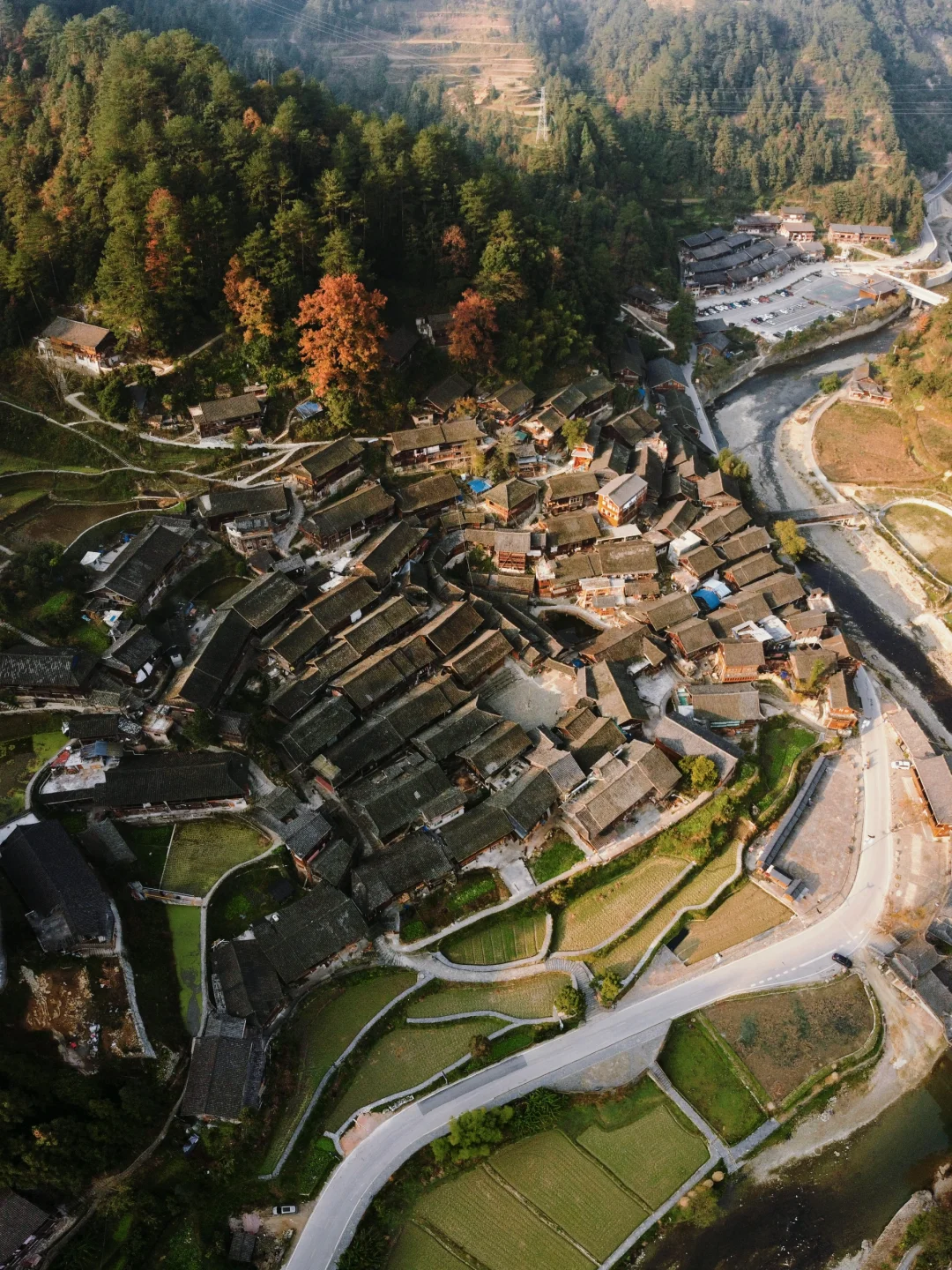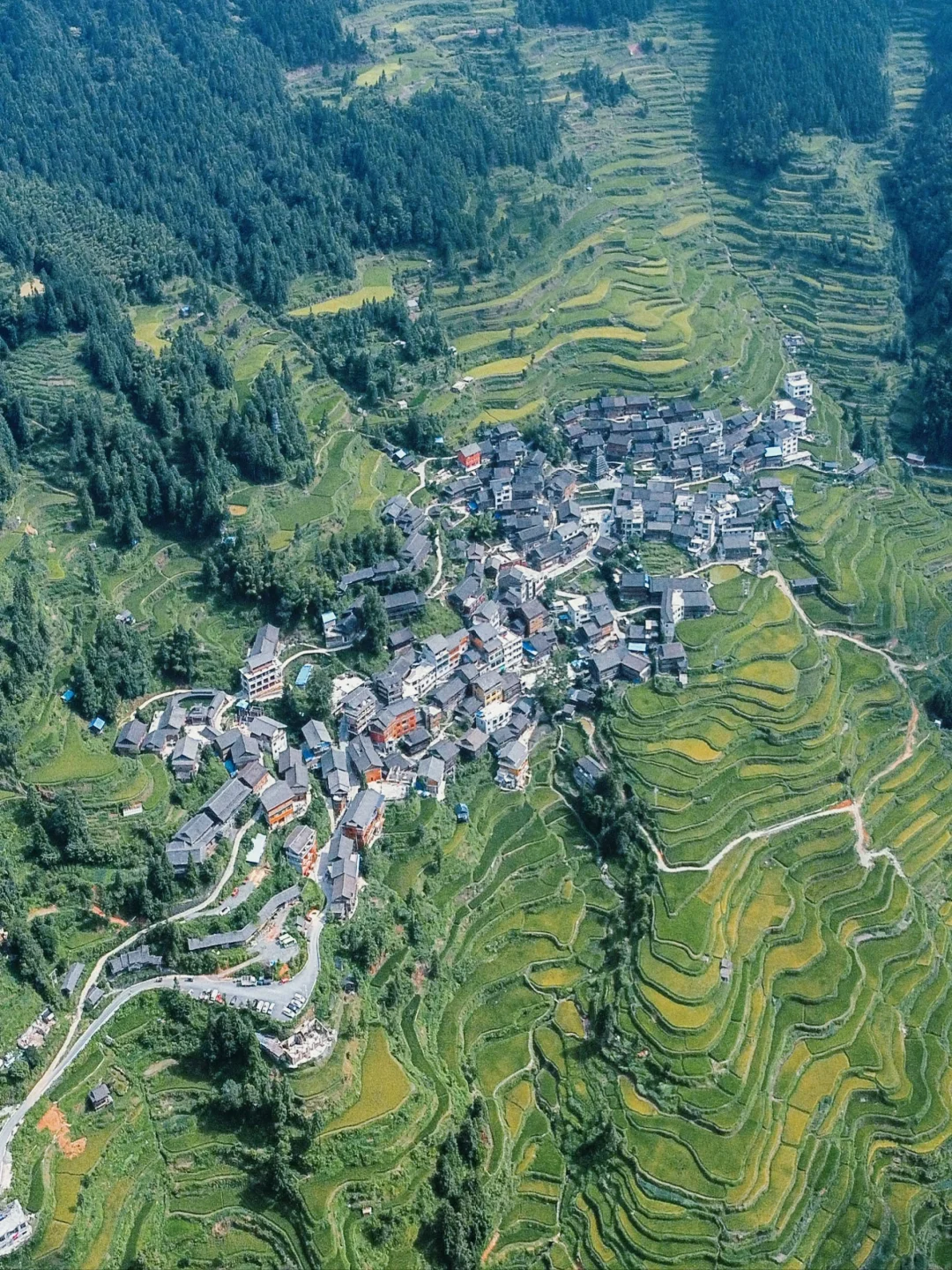 在肇兴侗寨后山的一个侗寨,可以直接从肇兴侗寨走上去或者坐车上去也可以,在山间梯田中安家,有航拍还是不错的