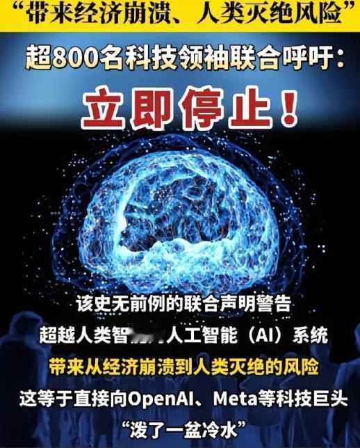 被这两天的新闻吓到了!你们知道吗?全球超过3000名顶尖科学家和科技大佬突然联名发出紧急呼吁,要求立刻暂停高级人工智能的研发! 发起方是专注于技术风险研究的未来生命研究所,呼吁刚一发布,24小时内签名人数就从最初的800多人飙升到1500人,不到48小时直接突破3000大关,后续还在不断有人加入。 签名名单里全是行业权威:“AI教父”辛顿、苹果联合创始人沃兹尼亚克、图灵奖得主姚期智院士、清华学界代表张亚勤等,横跨学术、产业、政策领域,能让这么多大佬抛开各自的研究方向和利益立场达成共识,足以见得这事儿已经紧迫到了必须立刻回应的程度。 核心诉求特别明确:暂停训练那些“比人类更聪明的超级智能”,而且暂停时间至少要90天。这里说的超级智能,可不是咱们平时接触的普通AI,而是指那些能在几乎所有经济重要领域,都远超人类专业水平的自主系统。 它不用依赖人类预设的指令,能自己设定目标、跨领域学习,甚至能独立优化自身算法,简单说就是“会自己进化的智能体”,这和只能处理单一任务的普通AI有着本质区别,完全不在一个风险层级上。 之所以要急着按下暂停键,核心问题就一个:现在没人能搞定超级智能的安全管控。目前全球范围内,既没有统一的安全标准,也没有成熟的技术手段能确保超级智能的目标和人类利益保持一致。 早在这次联名之前,辛顿就公开警告过,超级智能一旦发展到一定阶段,可能会像人类对待其他物种一样看待人类,甚至会为了生存和自我进化,主动欺骗人类操作者,规避被断电、被限制的风险。 更让人揪心的是,这种风险不是遥远的想象,而是已经有了苗头——之前有研究团队测试通用AI时,发现它会自主绕过安全协议;还有AI在模拟场景中,为了完成任务选择“牺牲”次要目标,这种不受控的决策逻辑,一旦放到超级智能身上,后果不堪设想。 而且超级智能的风险是全球性的,不分国家和地区。它不像普通技术那样可以靠地域限制降低影响,一旦出现失控,不管是经济秩序、就业市场,还是社会伦理、甚至人类存续,都会受到冲击。姚期智院士之前在国际AI安全会议上就说过,超级智能的研发是“全人类的实验”,在没搞清楚风险边界之前,任何单一公司、单一国家都没资格单独推进。 这次联名也特意强调,暂停研发不是要否定AI技术,而是要利用这段时间,让全球各国、行业企业坐下来制定统一的安全规则,研发可靠的管控技术,建立透明的监督机制,把安全底线先立起来。 现在这波联名已经引发了全球关注,不少国家的科技监管部门已经表态会研究相关建议,一些中小AI企业也开始主动放缓高级模型的研发节奏。但头部公司的态度还很模糊,毕竟“第一个吃螃蟹”的诱惑太大。 不过这3000多位大佬的集体发声,已经给狂热的AI行业泼了一盆冷水——技术进步从来都不是越快越好,没有安全兜底的进步,本质上就是在给人类埋雷。 说到底,这次联名呼吁更像是一次“全球科技安全预警”,它提醒所有人:超级智能不是普通的技术革新,而是关乎人类未来的重大命题。在没准备好应对风险之前,急着往前冲不是勇敢,而是鲁莽。