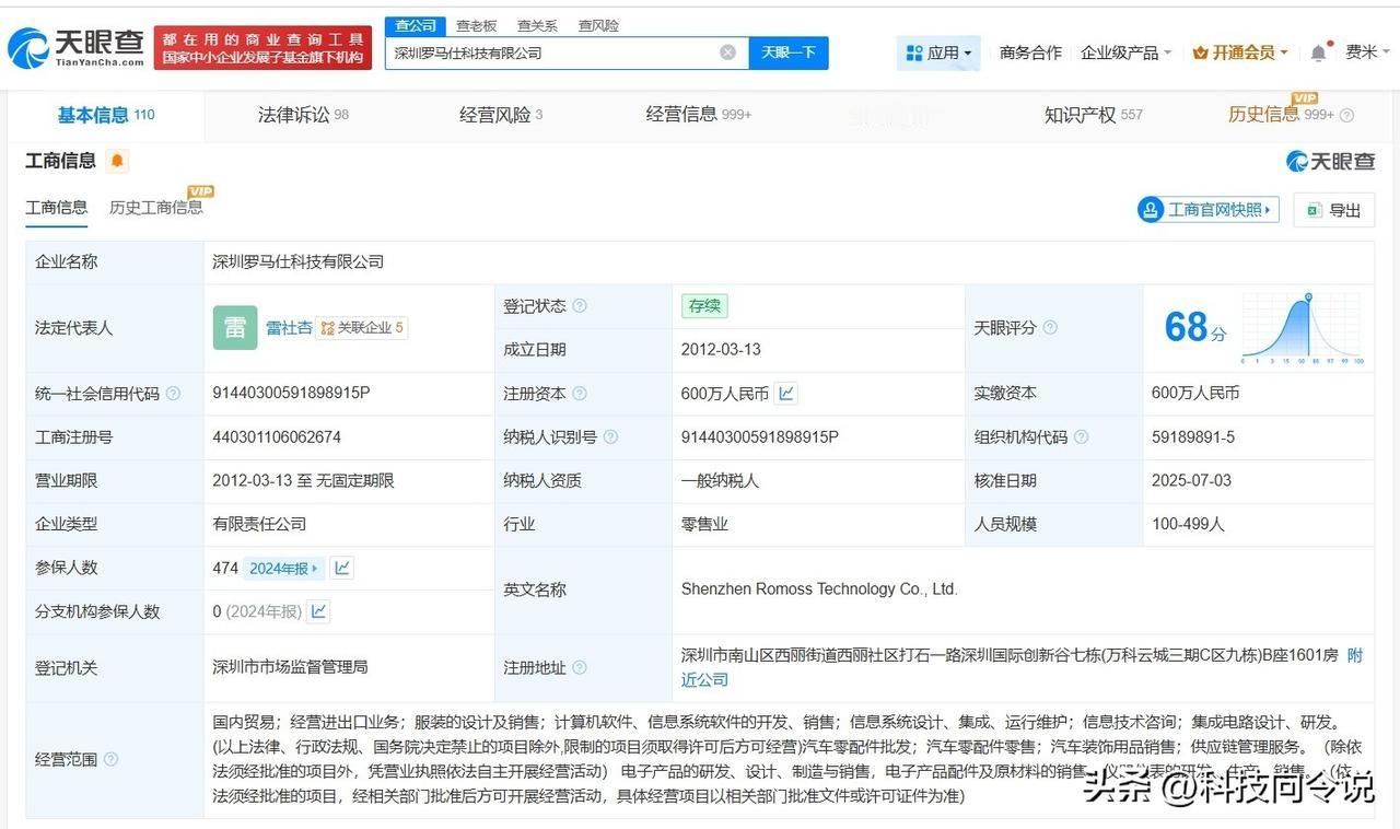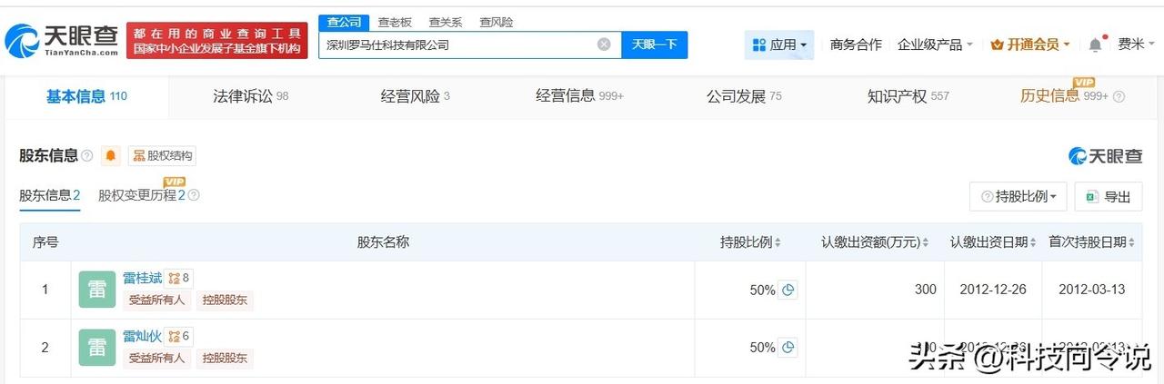 【罗马仕被冻结3886万股权 罗马仕所持3886万股权被冻结】 天眼查天眼风险信息显示,近日,深圳罗马仕科技有限公司新增两则股权冻结信息,股权所在企业分别为深圳市优选师科技有限公司、深圳华中科新材料技术有限公司,冻结股权数额合计3886万人民币,冻结期限均为三年,执行法院均为湖南省益阳市赫山区人民法院。 深圳罗马仕科技有限公司成立于2012年3月,法定代表人为雷社杏,注册资本600万人民币,经营范围包括国内贸易、经营进出口业务、服装的设计及销售等,由雷桂斌、雷灿伙共同持股。 天眼查信息: