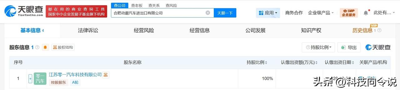 【零一汽车在合肥成立进出口公司 注册资本100万】 天眼查工商信息显示,近日,合肥动邀汽车进出口有限公司成立,法定代表人为黄泽铧,注册资本100万人民币,经营范围含货物进出口、进出口代理、供应链管理服务、塑料制品销售、化工产品销售、人工智能应用软件开发、人工智能基础软件开发、计算机软硬件及辅助设备批发、汽车零配件批发、计算机系统服务等。股东信息显示,该公司由江苏零一汽车科技有限公司全资持股。 天眼查信息: