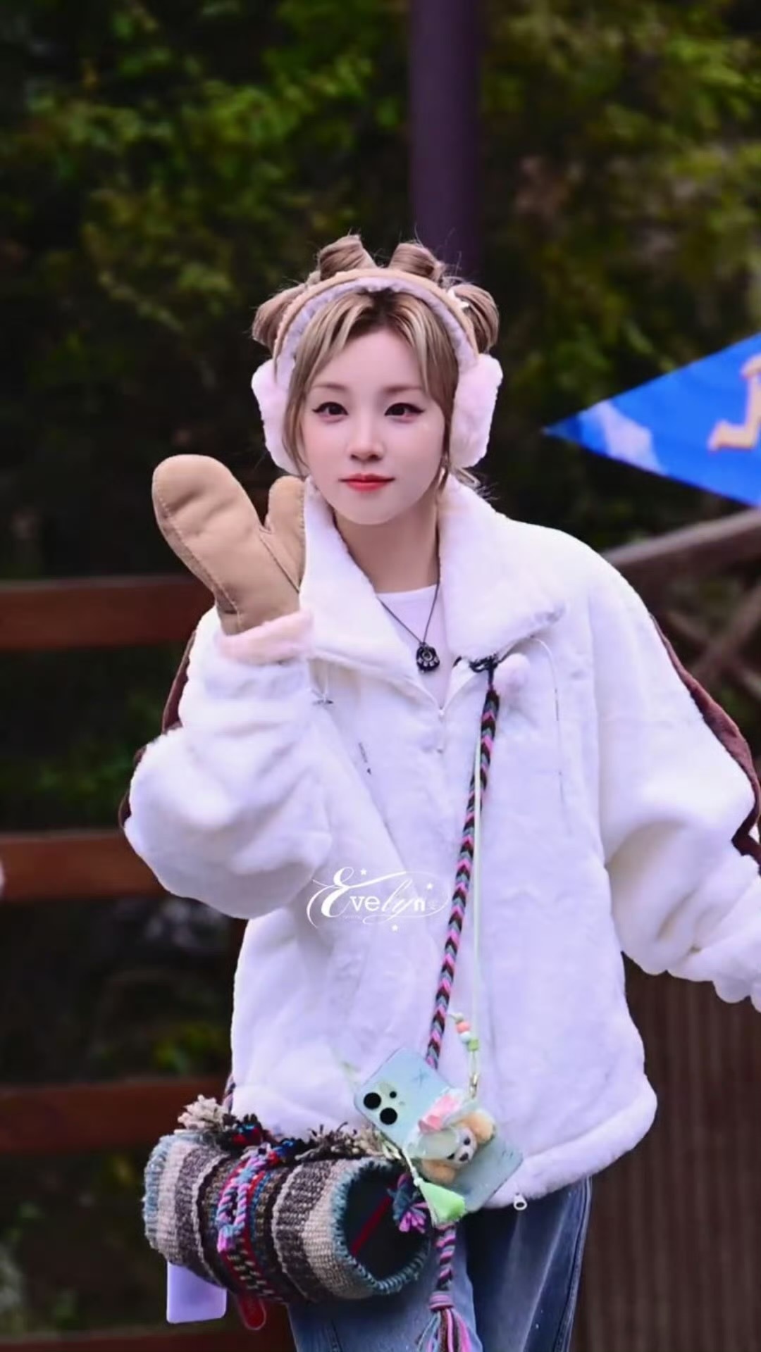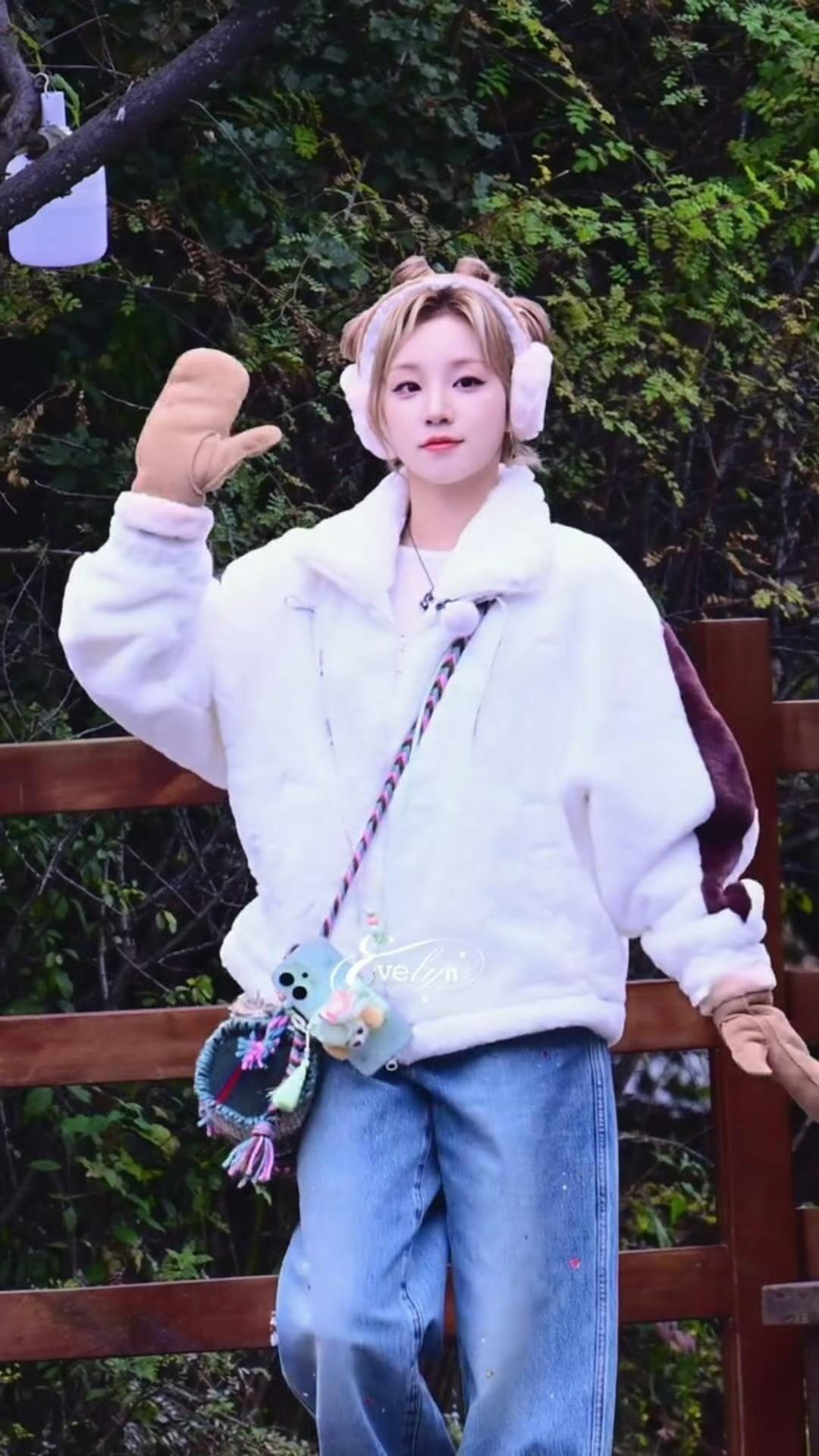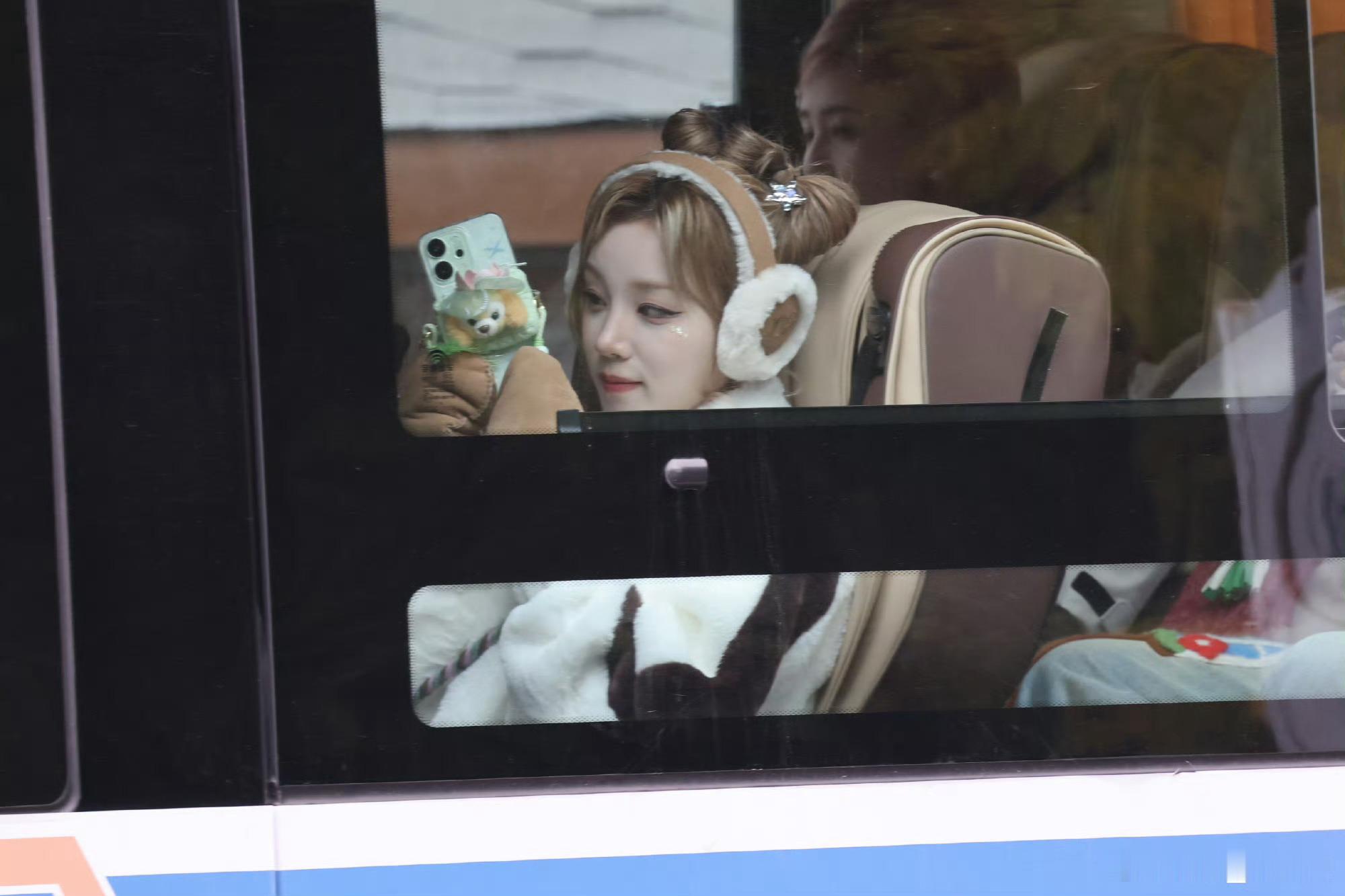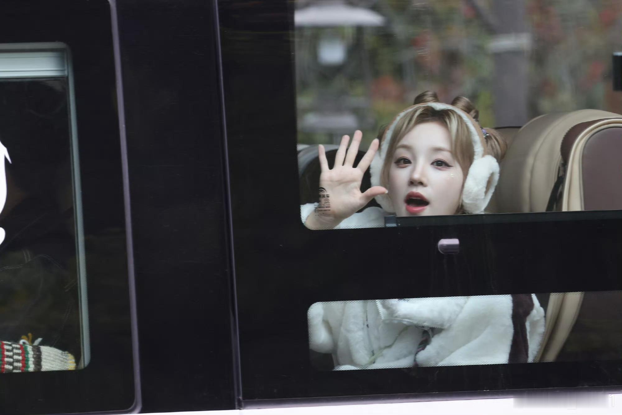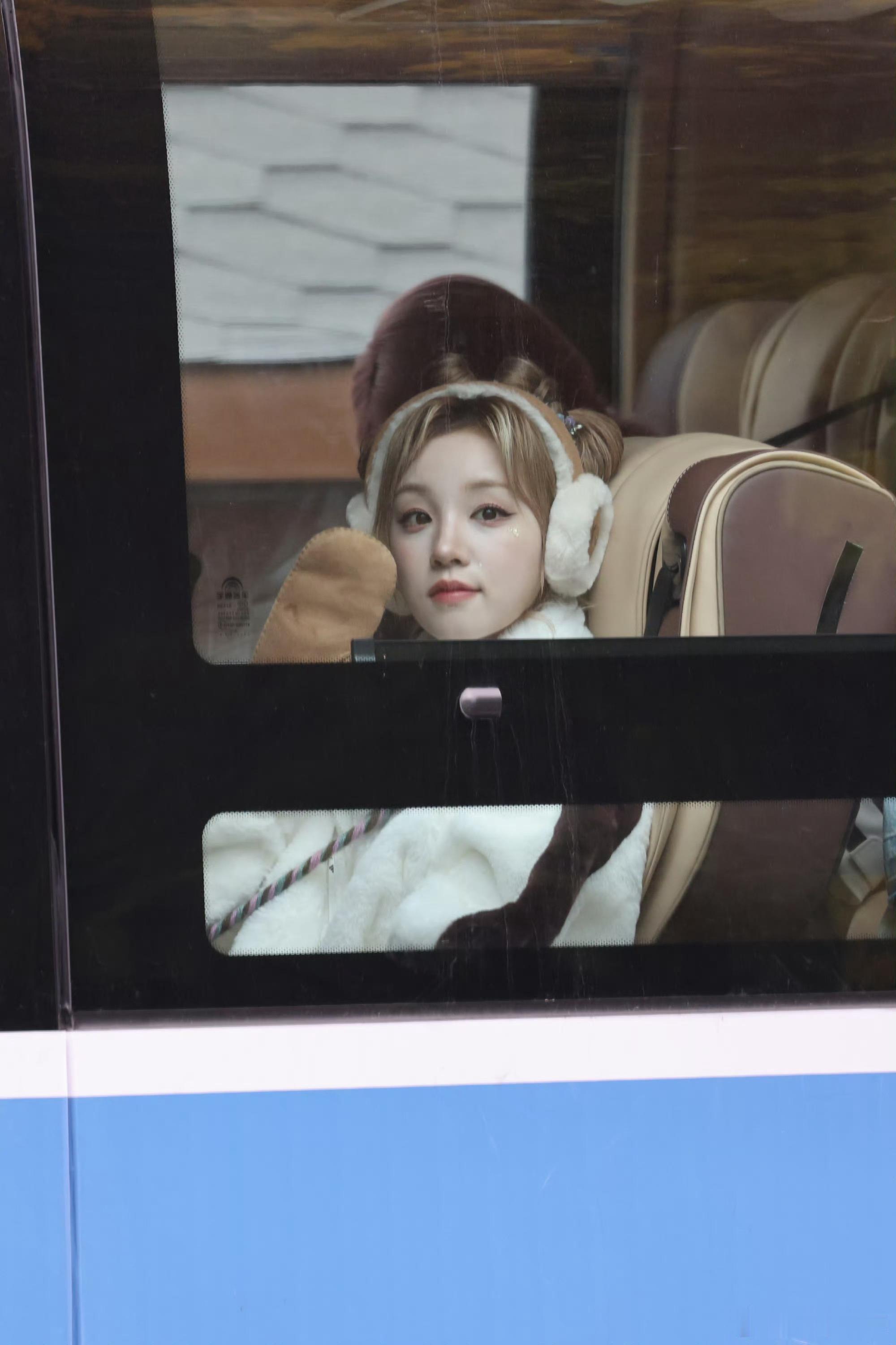宋雨琦双蝴蝶结造型宋雨琦奔跑吧西藏路透双蝴蝶结造型+耳套毛绒绒好可爱在车上也一