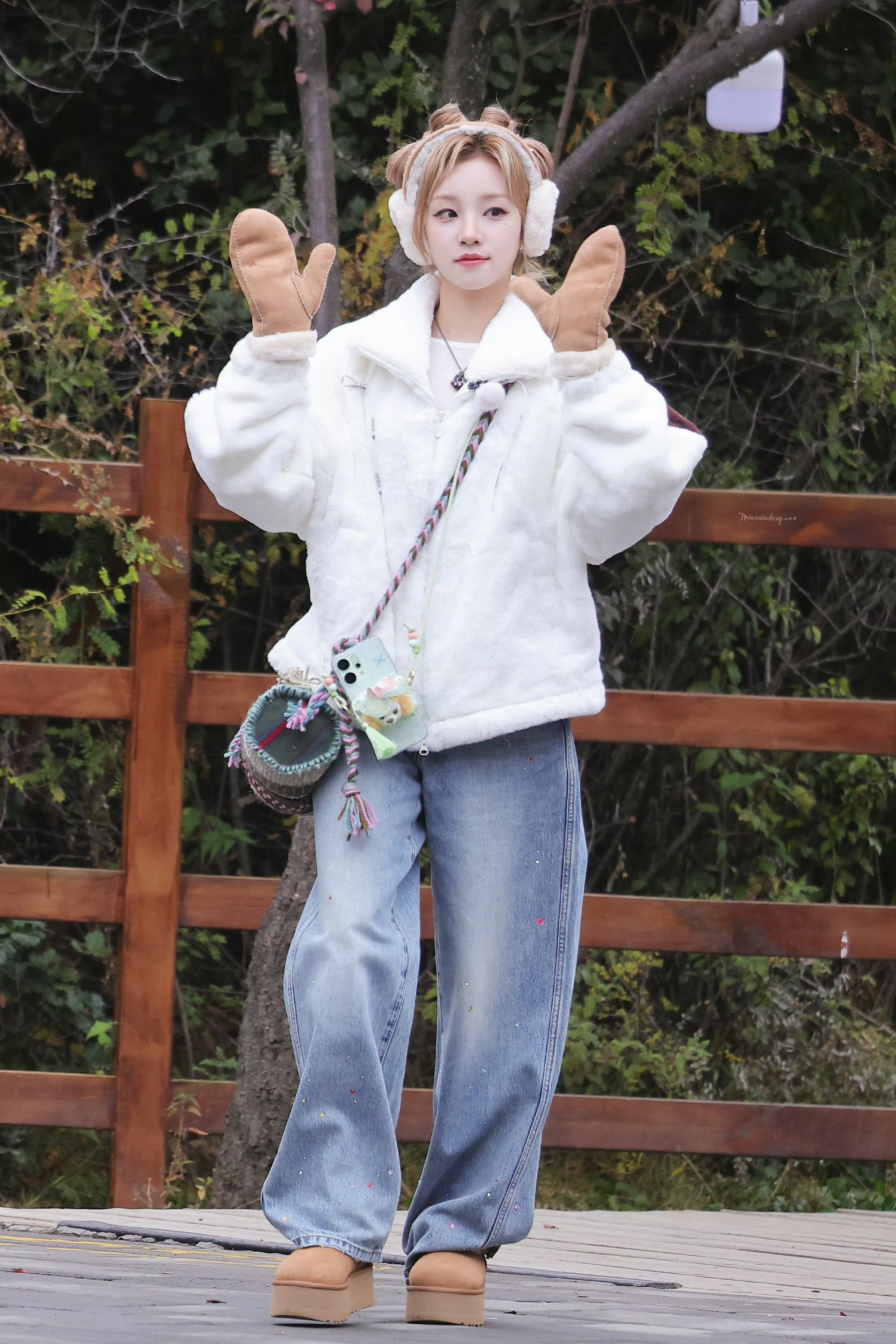 宋雨琦双蝴蝶结造型 宋雨琦奔跑吧西藏路透双蝴蝶结造型+耳套毛绒绒好可爱在车上也一