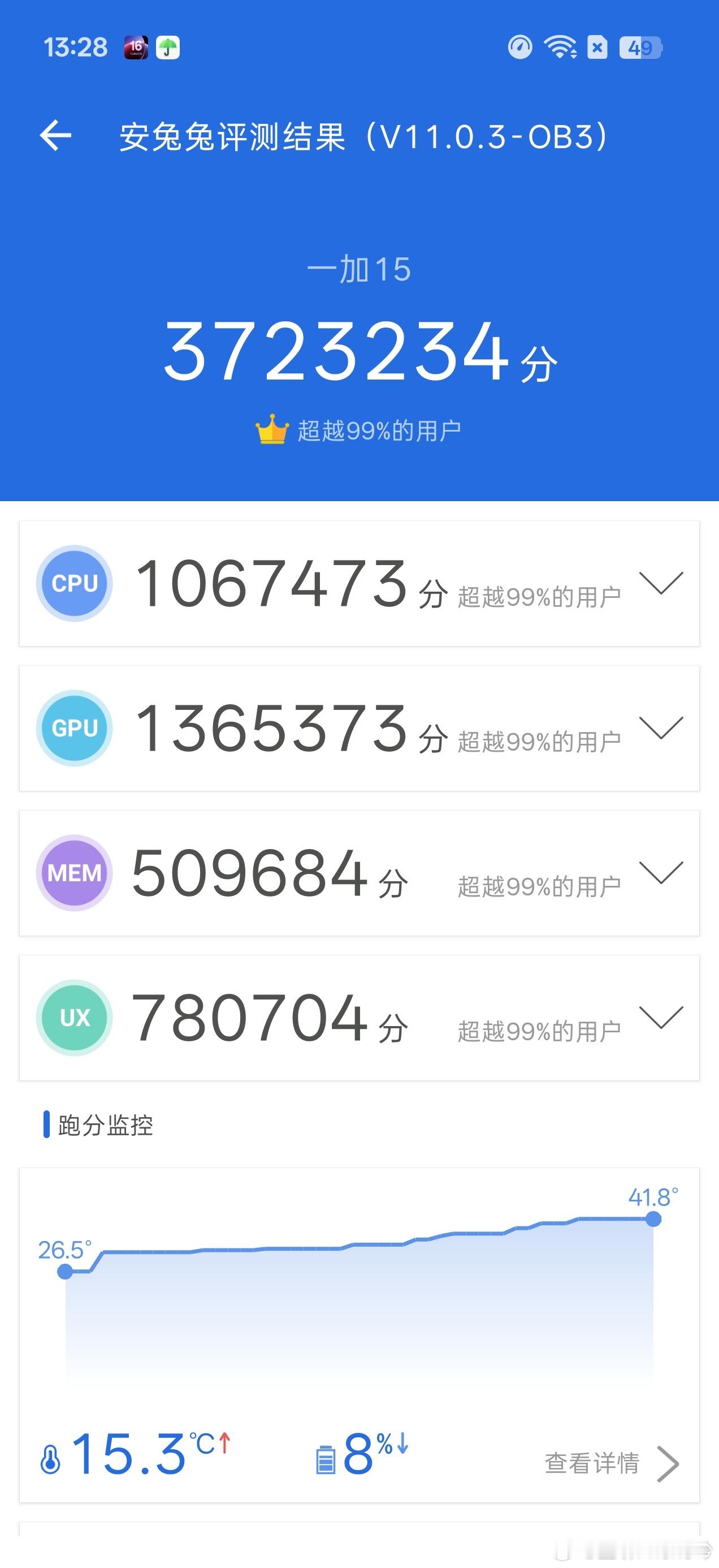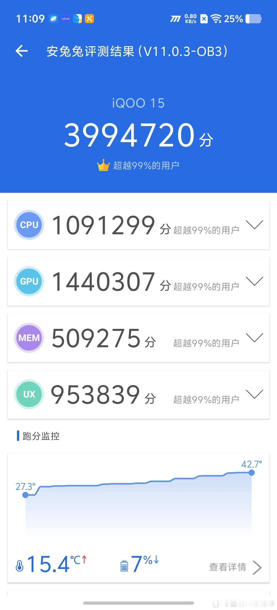 记得去年iQOO 13实测跑分就是第一,今年15依旧很激进。在架构和工艺没有大升级,只提升核心频率的情况下,跑分比上代8至尊要高出三分之一,理论性能应该提升很多。