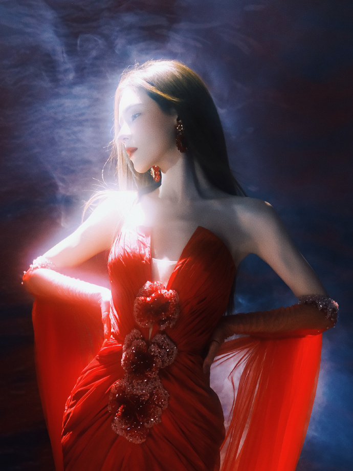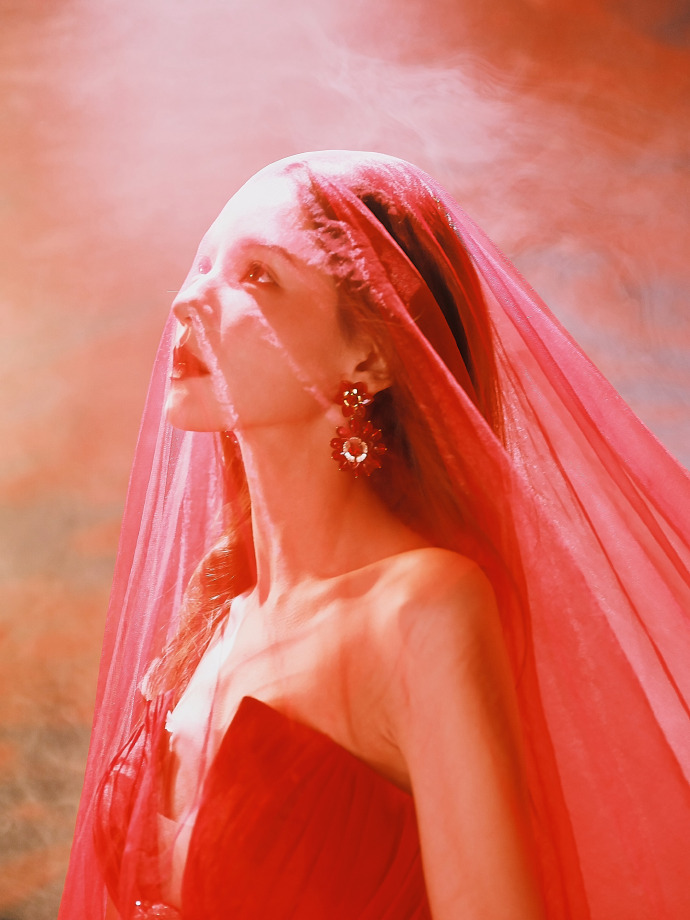 张予曦ELLE风尚大典造型出图,好会勾人心魄的珊瑚新娘[哇]