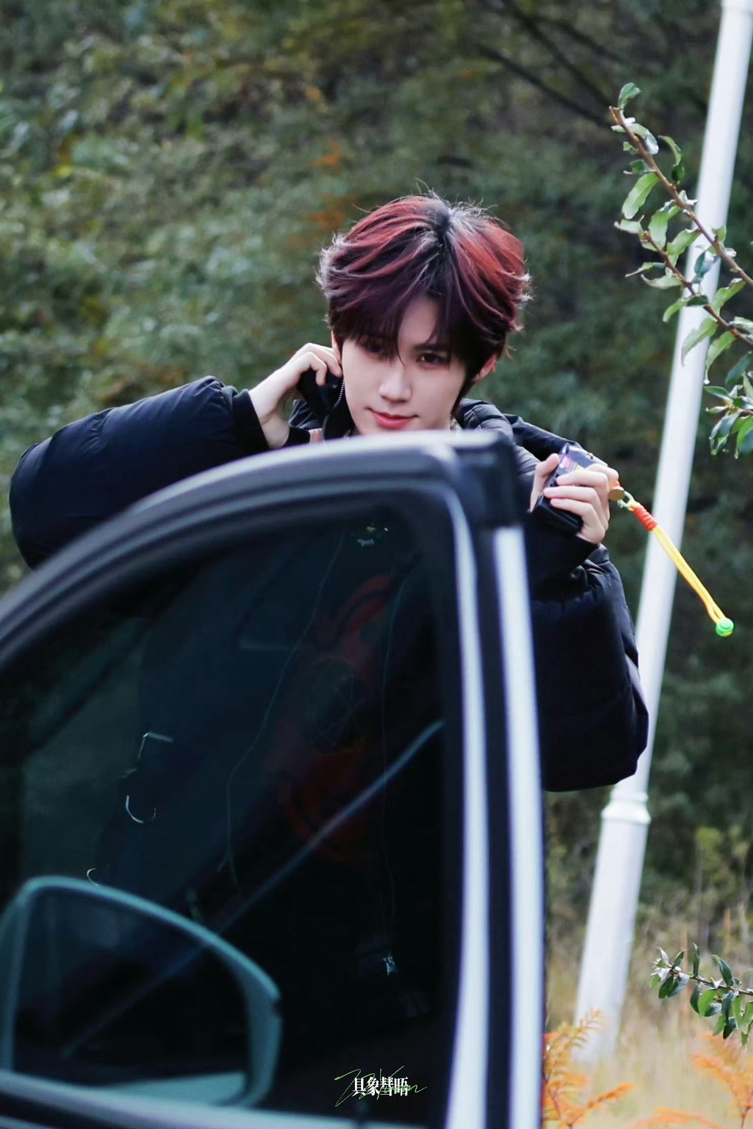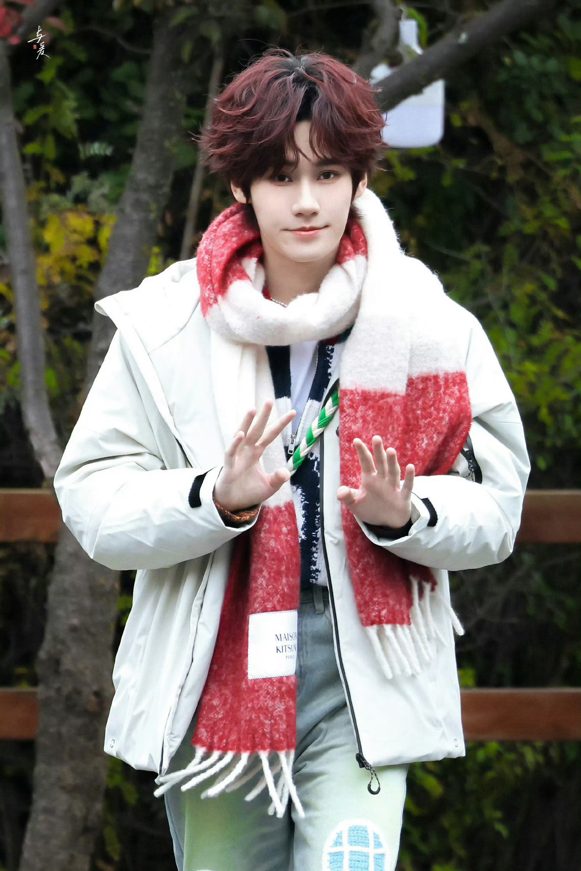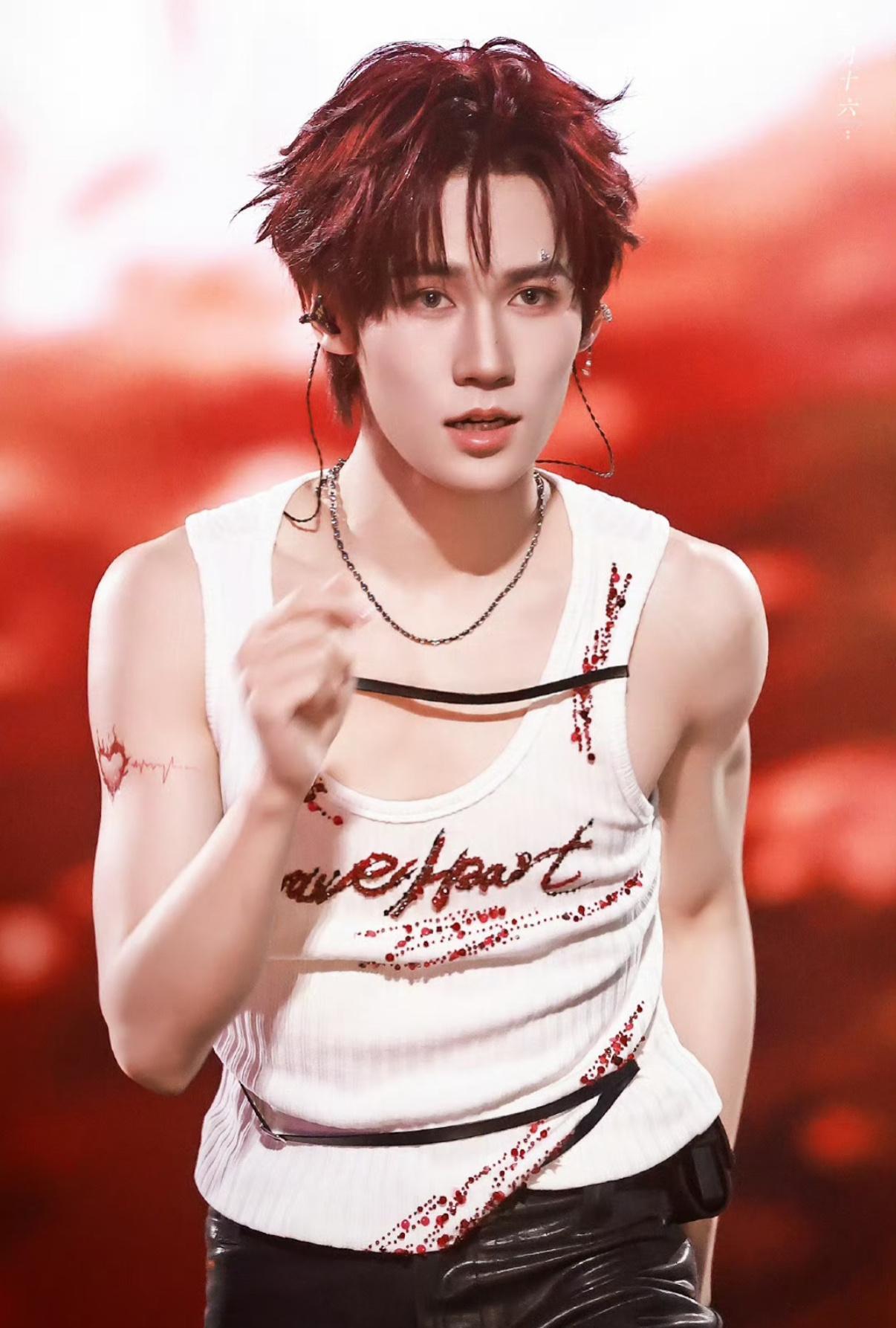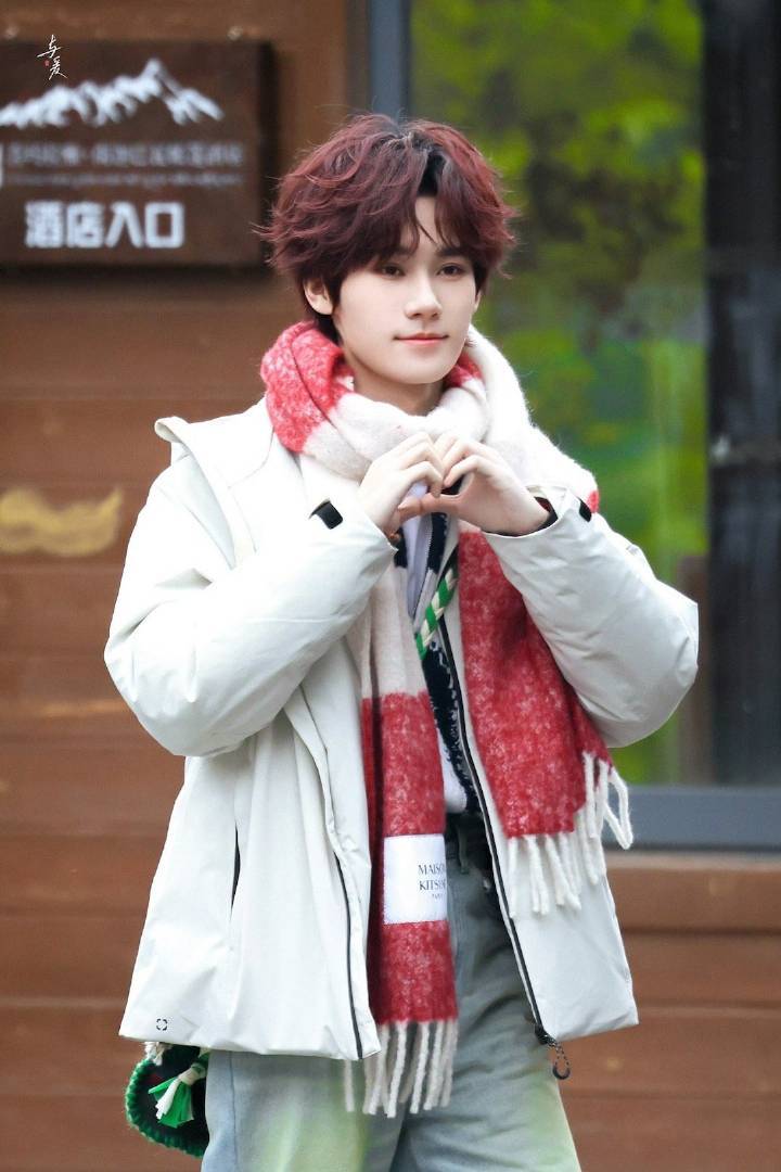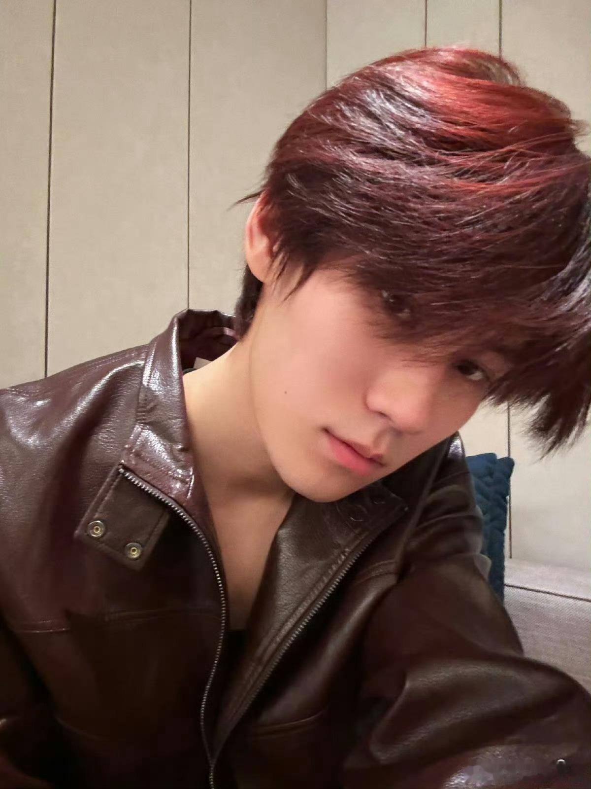 酒红发色配上超精致骨感的五官 直接把综艺现场变身氛围感韩剧 支持帅哥染发自由!!