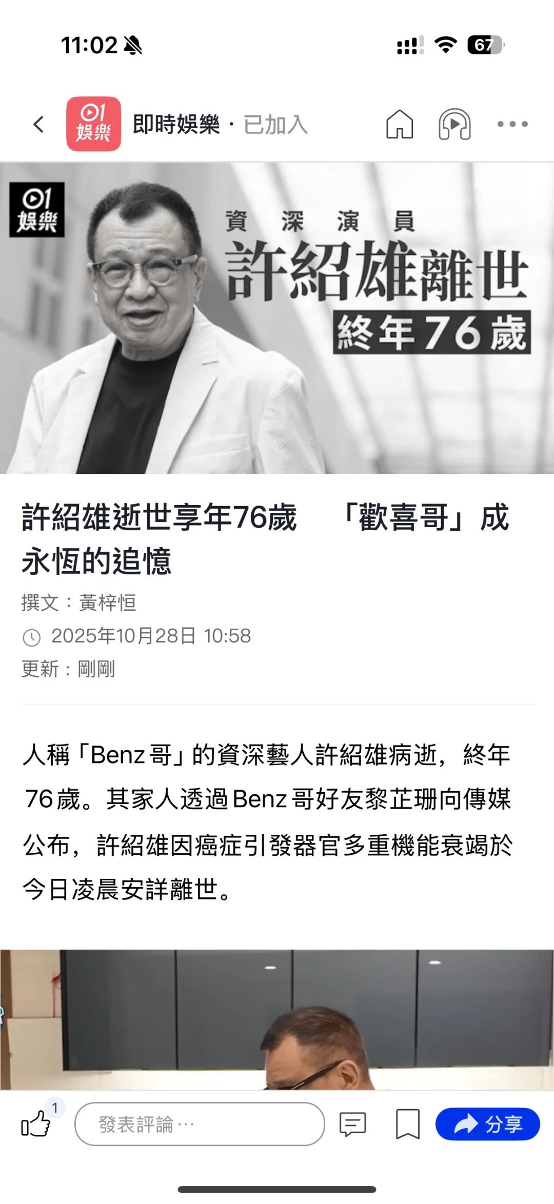 “欢喜哥”虽然去世,但他说的话仿佛还在耳边!许绍雄曾经说过,人这辈子除