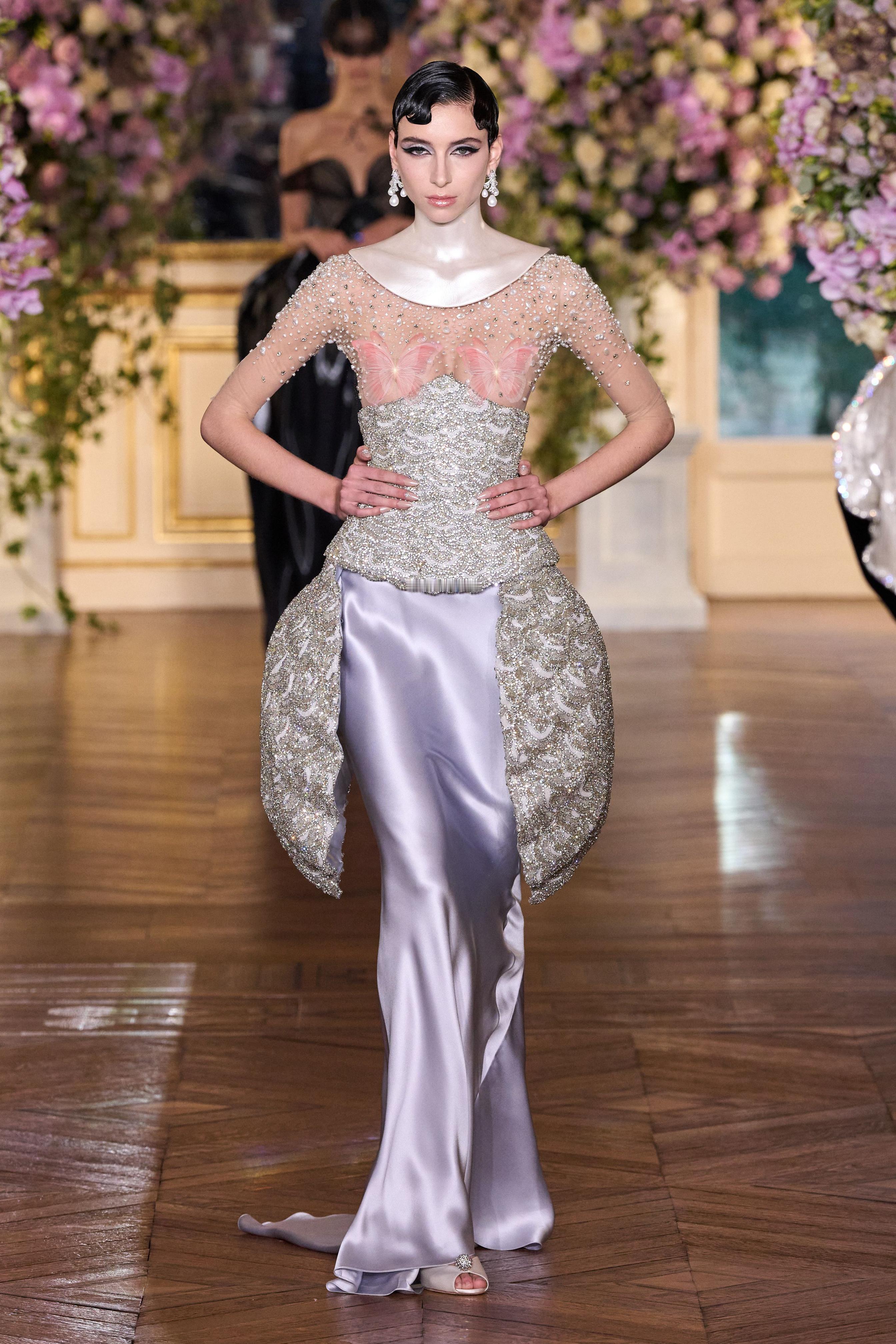 ELLE 风尚大典杨幂选择来自Miss Sohee 2025 春夏高级定制系列珍珠亮片蚌壳刺绣拼接紫色缎面礼裙亮相,宛如上岸的美人鱼。
