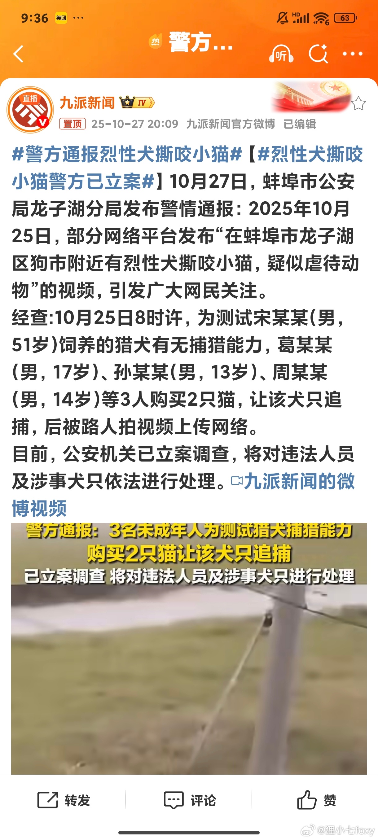 警方通报烈性犬撕咬小猫违法在哪?测试猎犬捕猎能力就算虐杀?小动保引导舆论,制造口袋罪,随意扩大化解释,才是扰乱社会秩序的真正违法行为[吐]