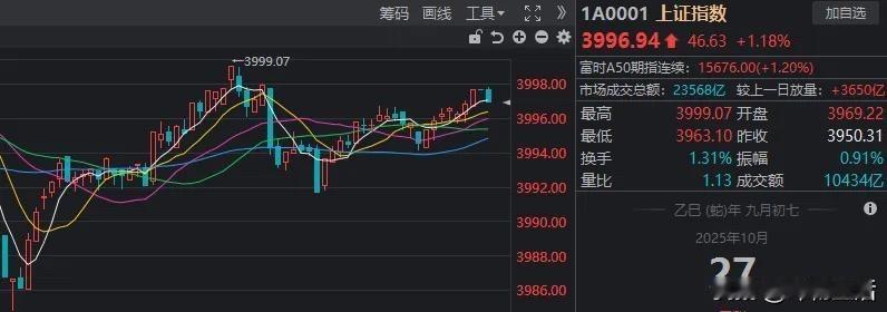 十年一瞬, 沪指重上四千, 市场以一根长阳告别长期蛰伏。 成交爆量, 情绪与估值同步修复, 政策托底+改革加速+资金回流, 共同点燃这把火。 高点是里程碑, 更是试金石: 基本面能否跟进, 企业盈利能否接棒宽松, 决定行情长度。 莫忘2015教训, 杠杆猛于虎, 监管需前置。 慢牛比疯牛更健康, 且行且珍惜。 [图片来源网络]