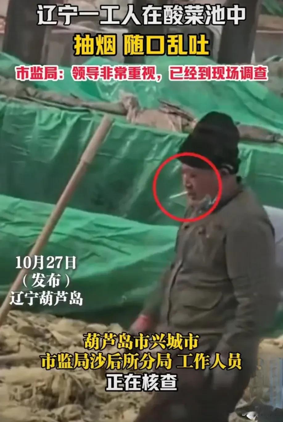 这种人太可恶了,应该枪毙! 最近辽宁发生一件食品卫生事件,食品安全问题关系到每个人生命健康问题,辽宁一名工人在工作时,向酸菜池吐痰和烟头,太可恶了! 首先这名工人应该承担相关责任,如果没有被发现呢?也不知道是不是第一次?还是说是惯犯,以前出现过类似事件,让这些素质低下的人承担相关责任。 其次就是这家企业管理有问题,平常安全教育是否到位?企业规章制度是否落实等等问题? 最后就是监管部门应该如何落实食品安全问题,有人报道就追究责任,没有人报道就……监管部门一定要从根源上解决食品安全问题。 食品安全问题 食品品质警示