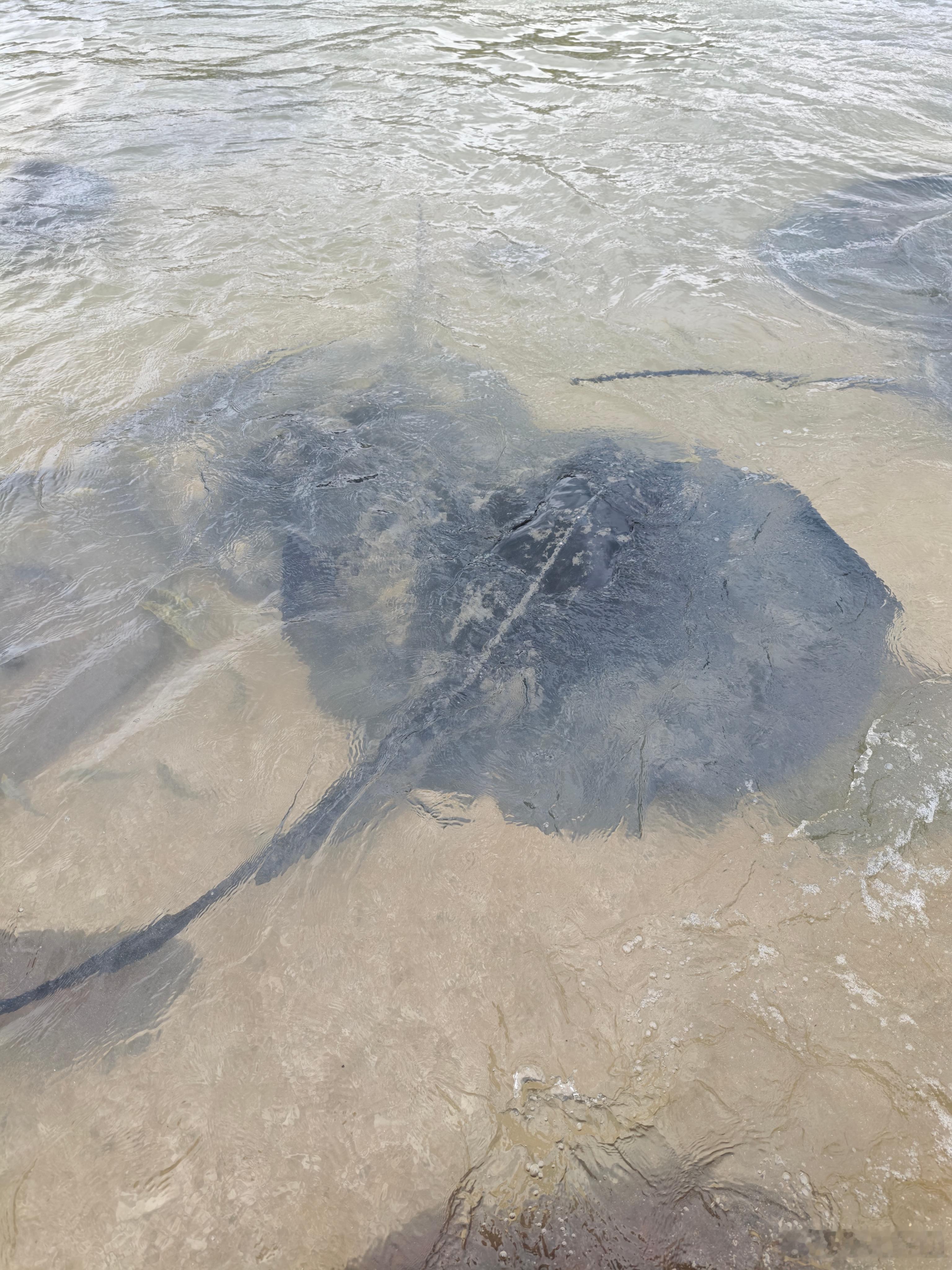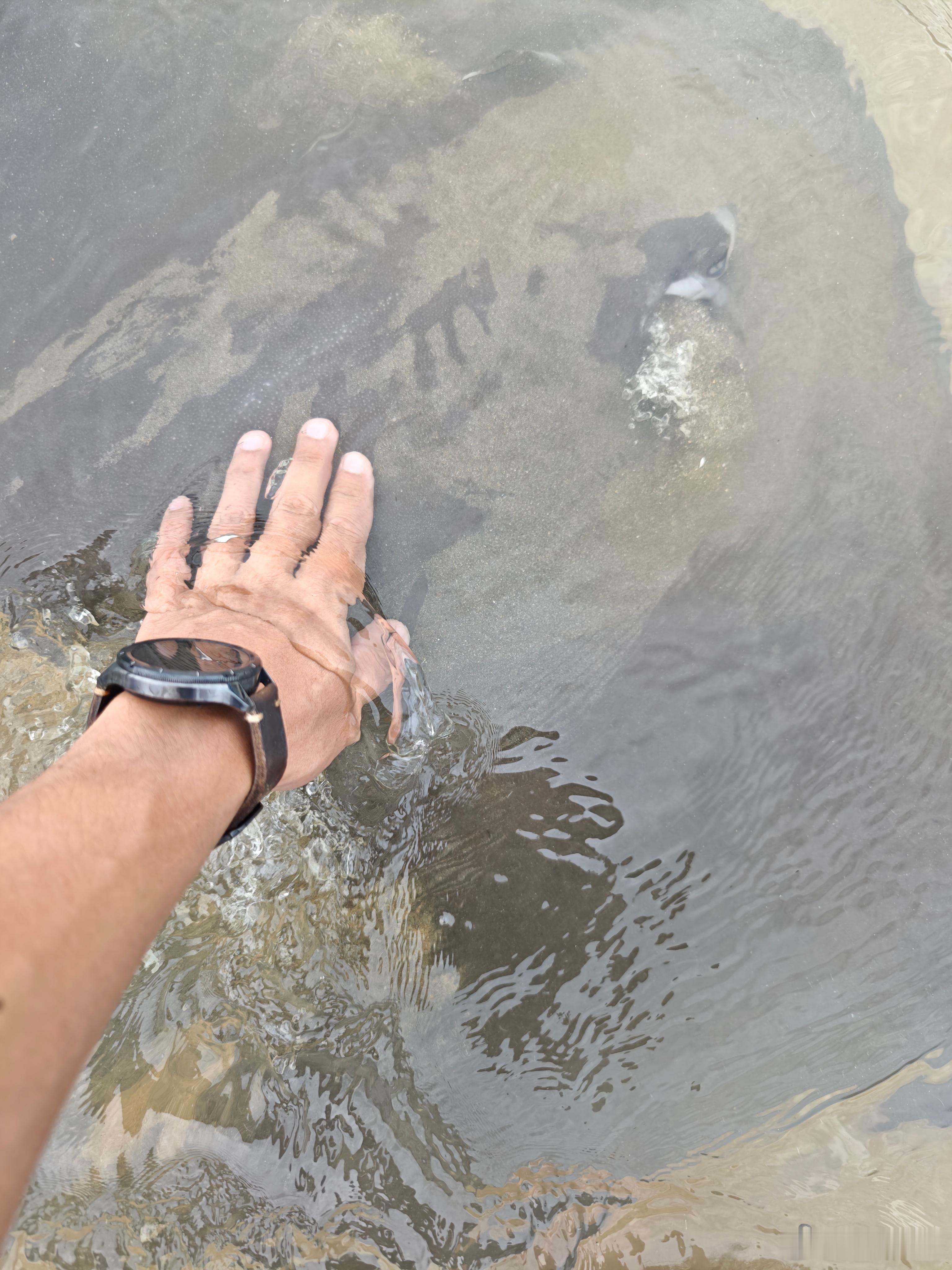 分界洲岛喂魔鬼鱼这个项目体验不错,一个人80,每人3条鱼,可以喂可以摸,魔鬼鱼一点都不怕人,还往人腿上拱。