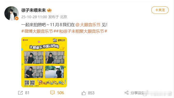 总觉得徐子未的歌里住着一个故事,轻易就能唱进我们心里。那些开心、难过、迷茫的时刻,好像都有他的歌声陪伴。和徐子未相聚大眼音乐节 所以这次,换我们去现场陪伴他徐子未人生四格