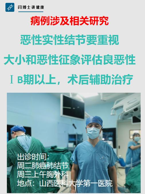 体检发现大于2厘米肺结节,是肺癌吗。周二出肺癌肺结节门诊,来了一位69岁男性患者,体检发现肺部有2.4厘米肺结节,心理很着急。患者自述其老伴就是因肺癌过世。我看了他的胸部CT片子,该患者肺部病灶呈实性,有明显的恶性征象,建议手术治疗。