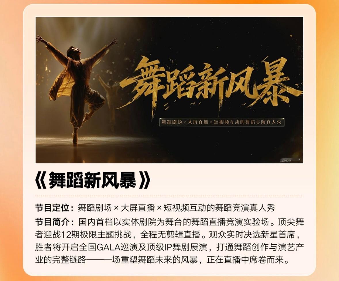 芝士娱乐 🥭《舞蹈新风暴》招商:《舞蹈风暴》升级回归‼️以实体剧院为舞台的舞蹈直播竞演,观众实时决选首席,大家期待哪些宝藏舞者参加呢?[羞嗒嗒] 芒果秋季招商大会节目单