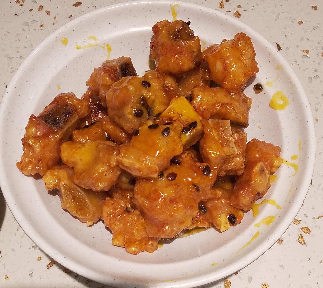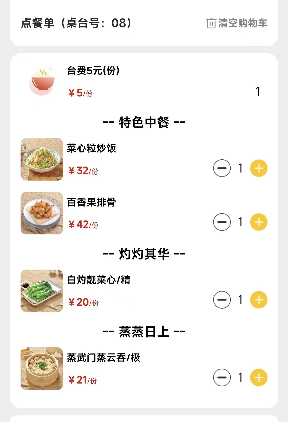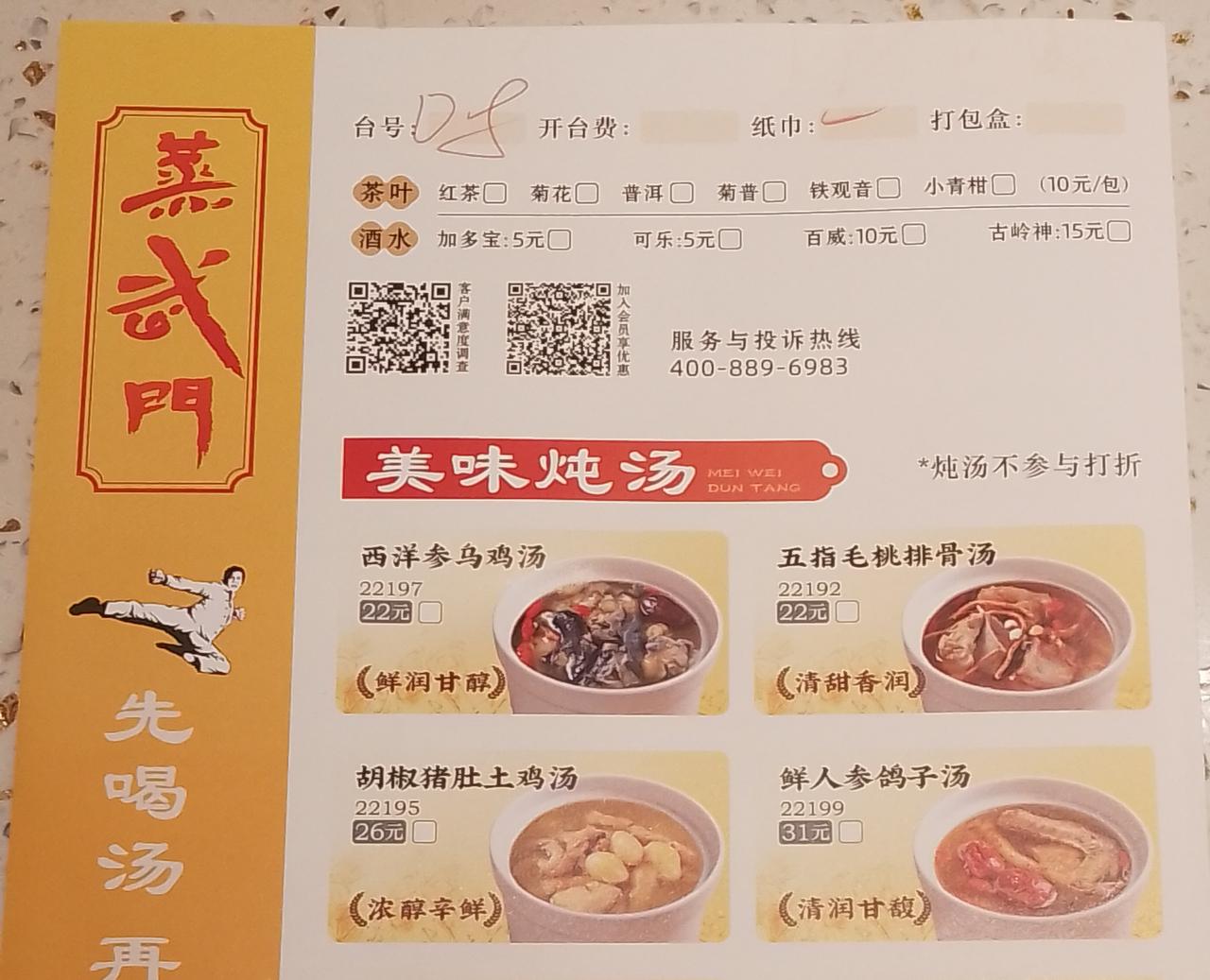 今天过来黄埔区丰乐北路蒸武门,看看我点了4碟有没有预制的?第一是菜心,应该就不是预制的,第二百香果,炸排骨,以前就叫酸甜排骨,现在用百香果捞炸排骨,排骨要现炸的。第三是蒸云吞,云吞可以预先做好,但要蒸好云吞就马上拿出来了,第四是炒饭,炒饭就必须先煮好饭,散热后再炒的,不算是预制的。四碟总价是120元,享受优惠后,实际付款112.9元。