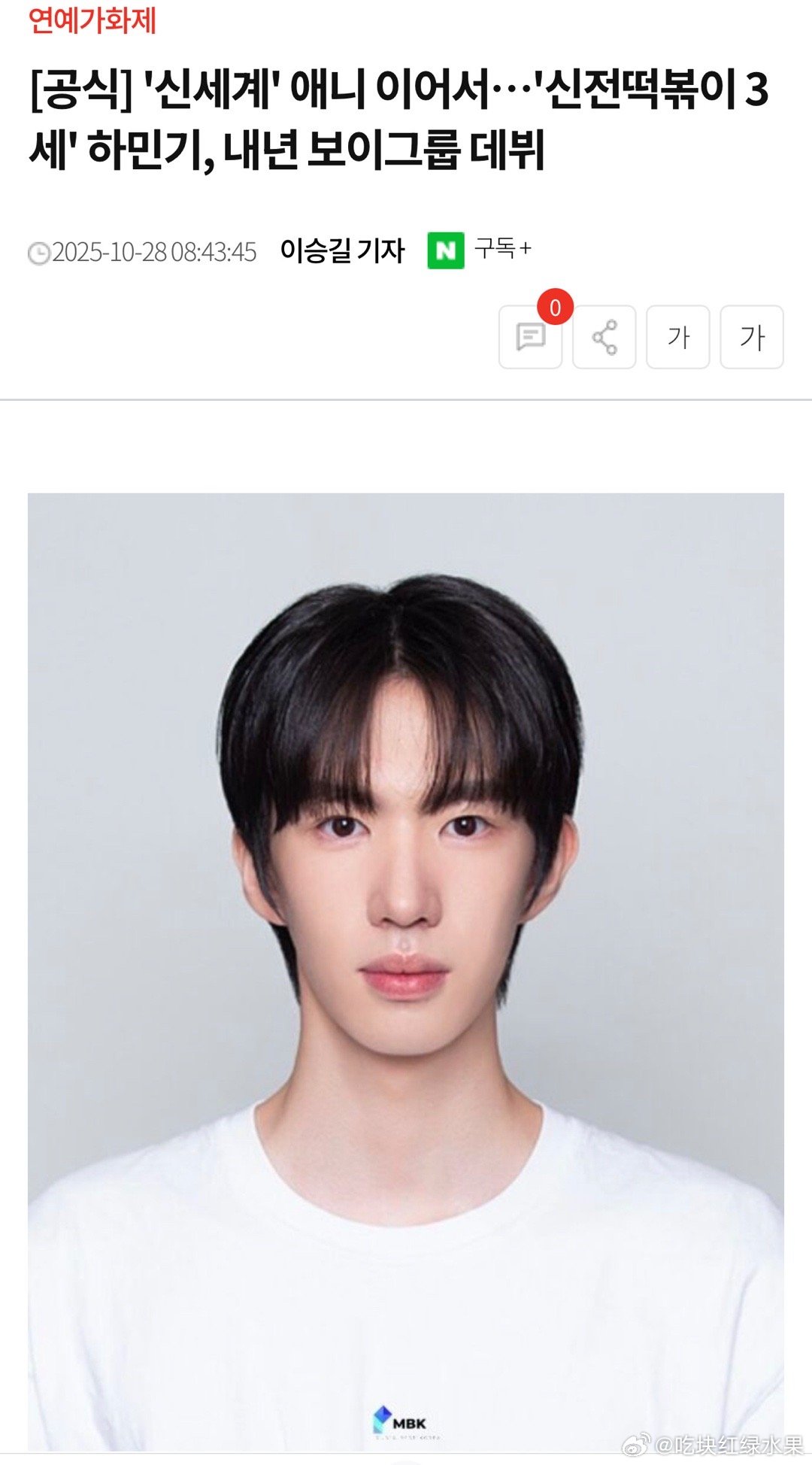 继新世界文徐允之后…“神殿炒年糕三代”河民基也将于明年以男团身份出道
