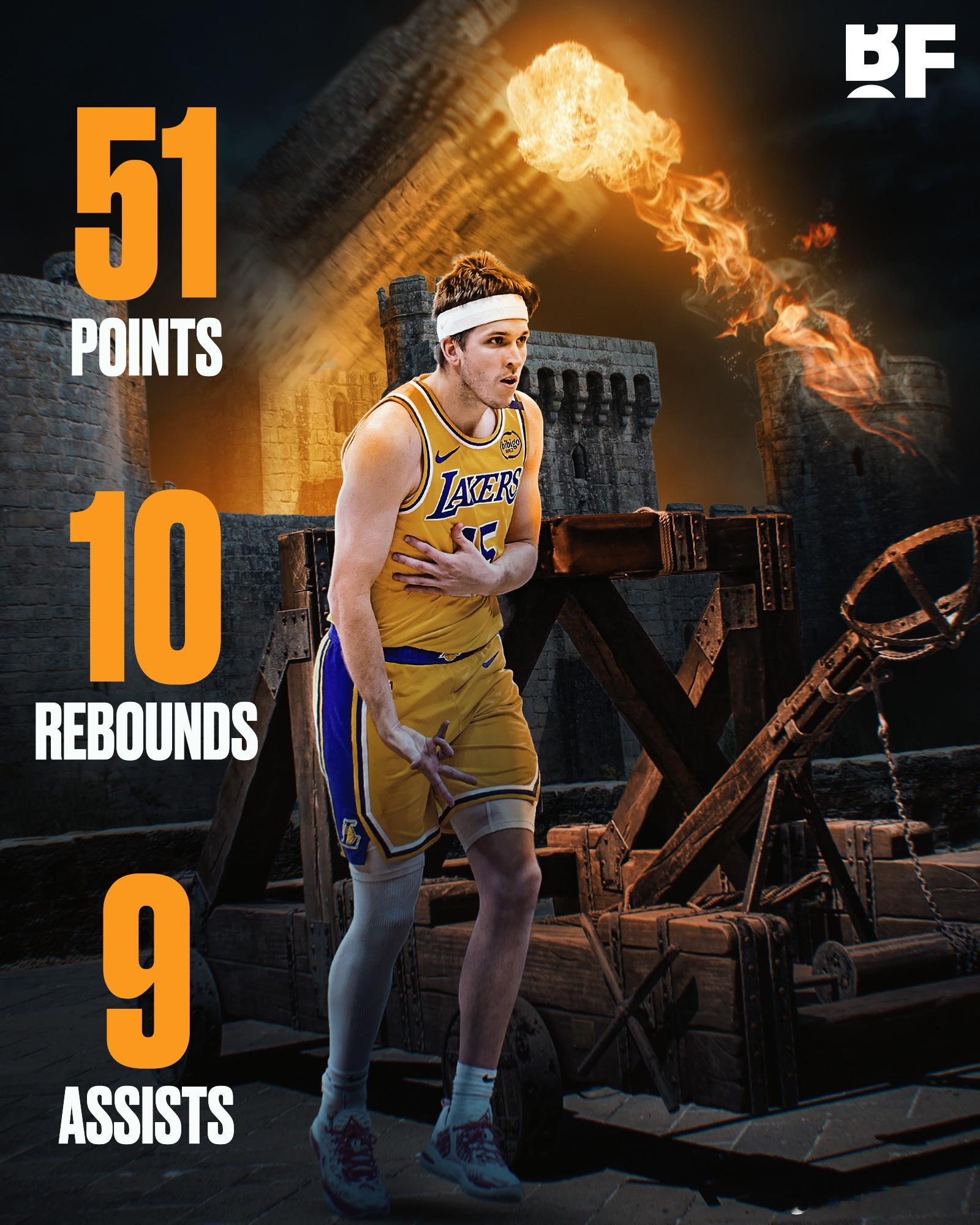 大哥,二哥缺阵,里弗斯背靠背一场51分,一场 41 分,赛季至今场均 34 分,队内还有一位场均 46 分的东契奇,还有一位养伤的詹姆斯。