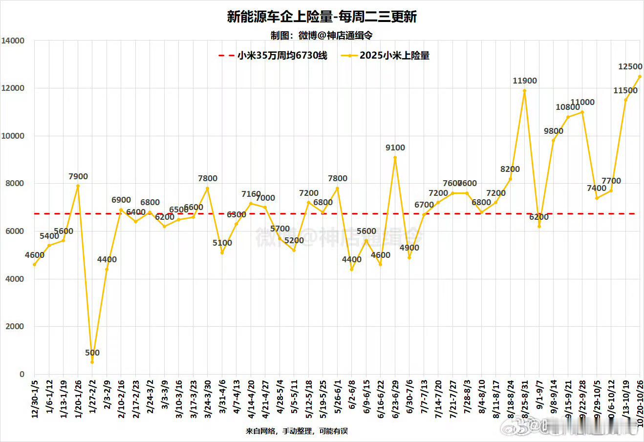 1.25万台,小米汽车上周上险量冲到新势力第一了?