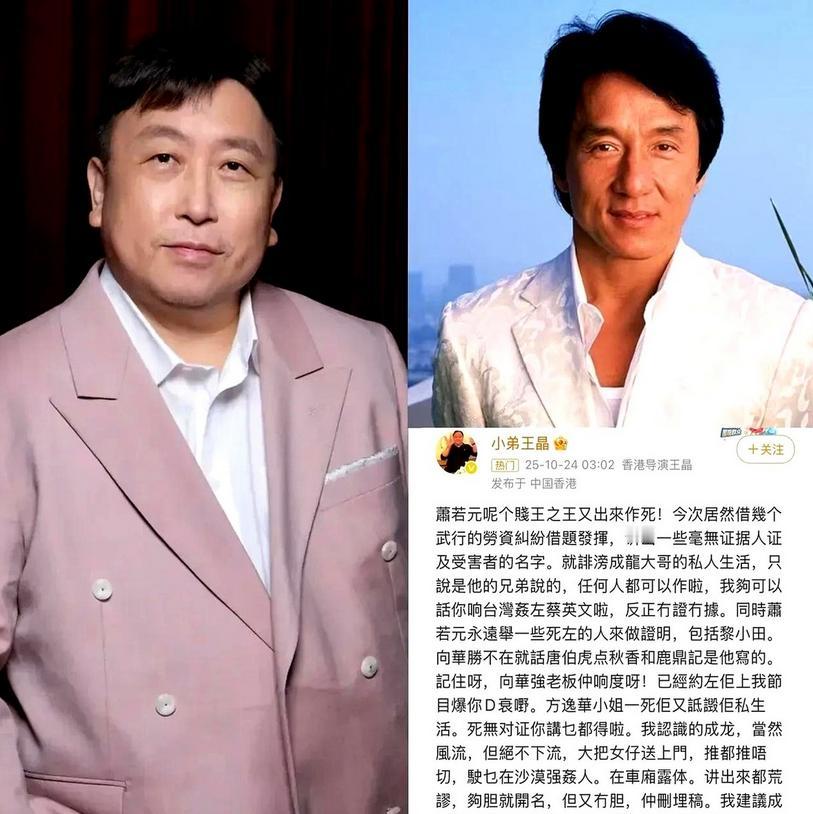 成龙大哥又惹脏水? 据说车门都没关上, 说话的人是香港的萧若元,不知是什么原因,突然提起当年成龙在沙漠拍电影时,对一个女演员做了不当的事。 面对大家的质疑,萧若元一直没拿出实锤,只说让大家自行判断。 倒是王晶率先站出来替洗白,说成龙不会做那种下流事,还说萧若元根本拿不出证据。 这倒让我想起来当年罗永浩和王自如的对话,“你要是说保密就不要说,说了你就得有证据拿出来。” 说到底,没证据的话不能随便信,否则这件事还是要等法律来评判。