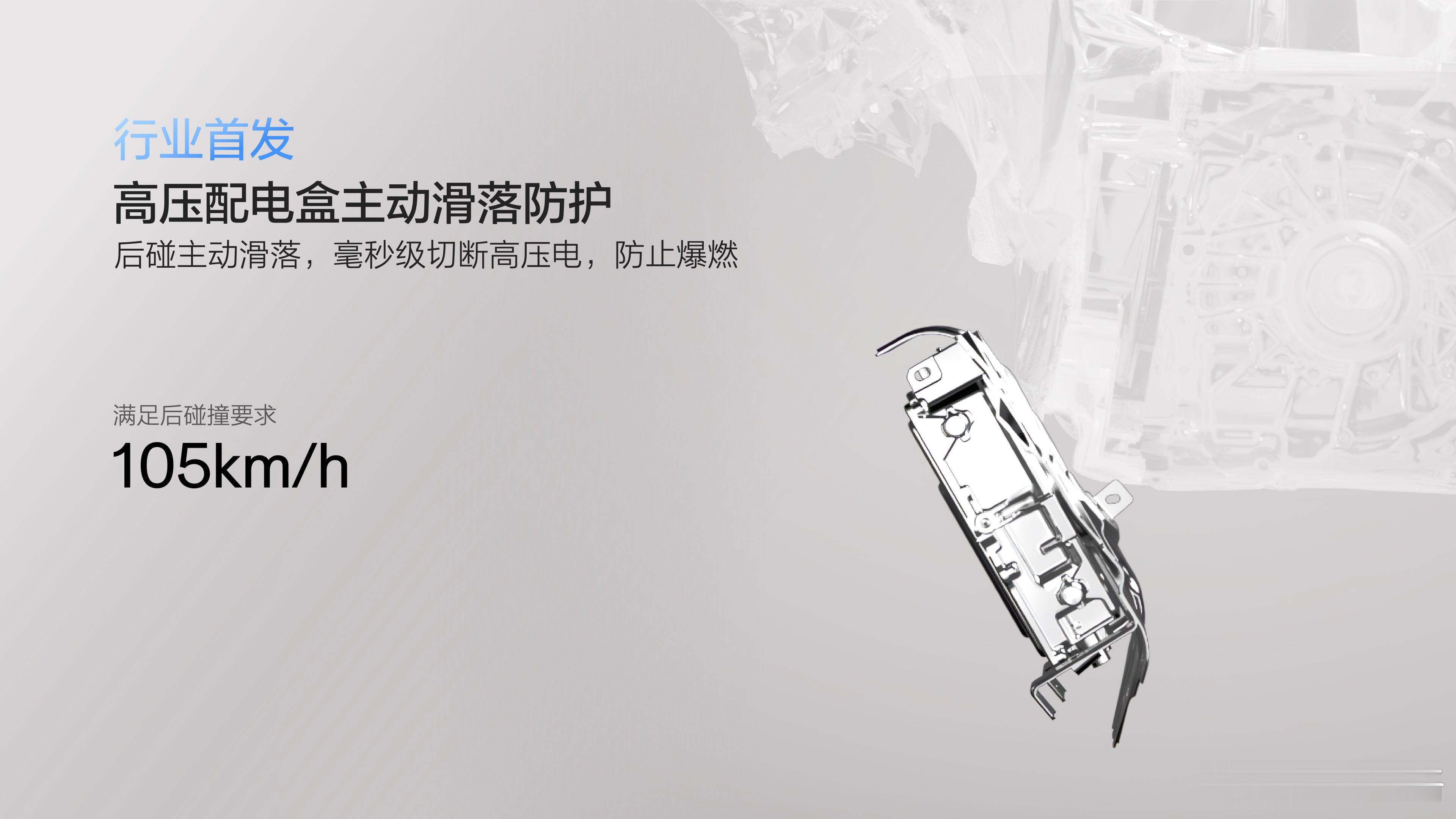 1. 高压配电盒主动滑落防护,万一被严重追尾,说明是严重那种,更好切断高压电源